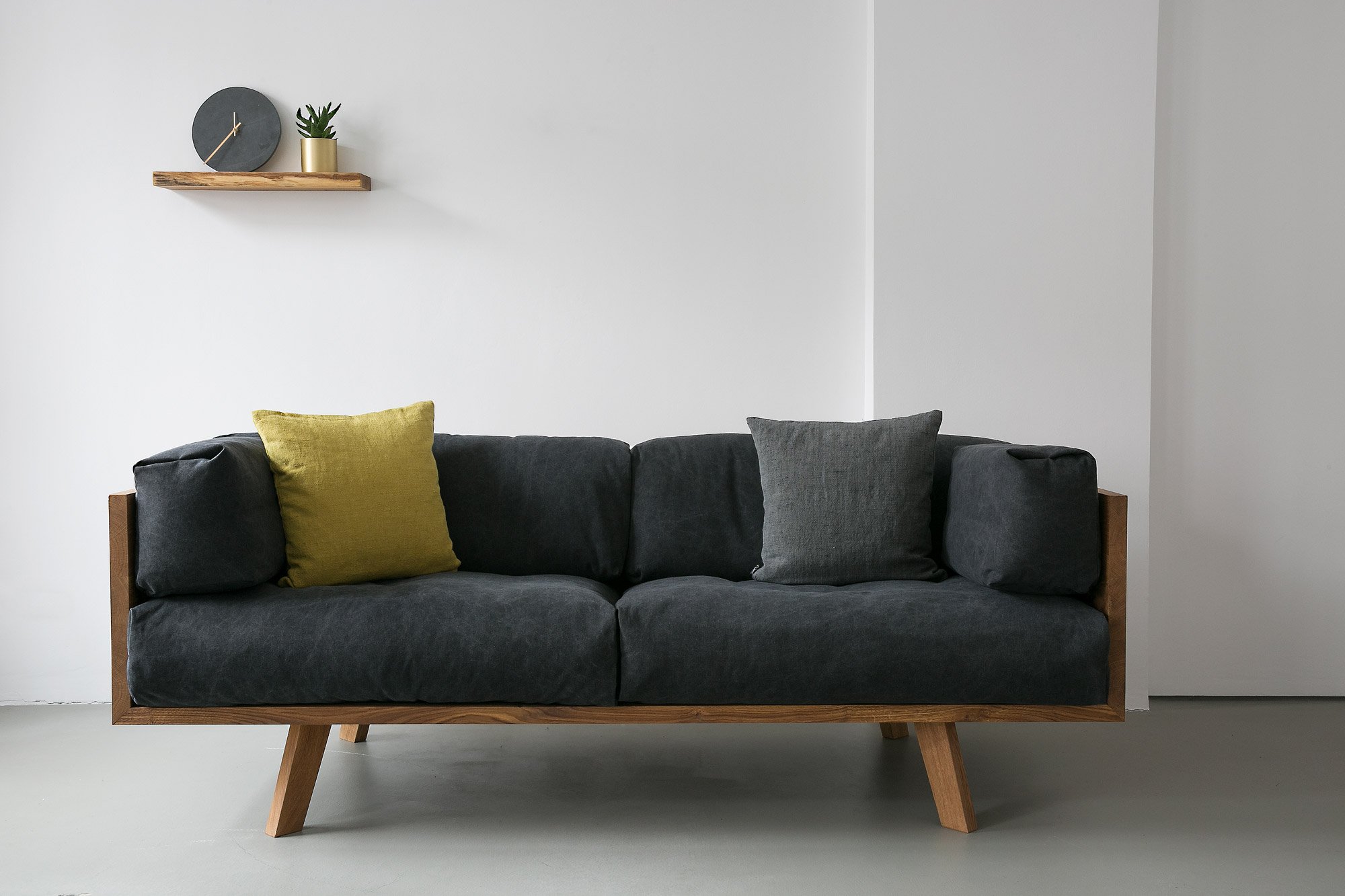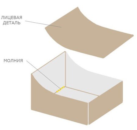 - En la etapa final, queda por ensamblar todas las partes del sofá. Es necesario pensar cómo se conectarán los detalles en la etapa de planificación. Hay dos formas principales de unir elementos. Se pueden coser al revés, cosiendo una tira doble sobre la conexión.