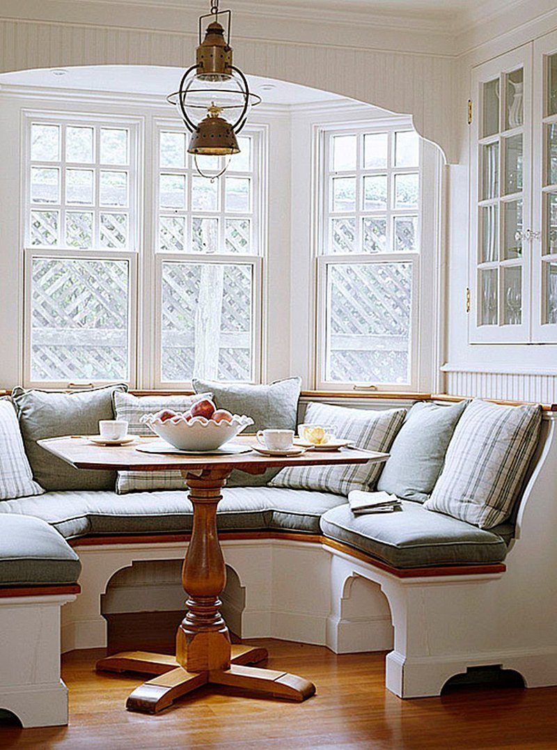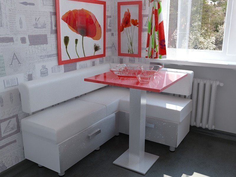 Las formas y los modelos dependen del vuelo del pensamiento de diseño. Y ella, como sabes, puede llegar muy lejos.Por ejemplo, una esquina blanda no estándar con asientos opuestos, como en un café, encajará perfectamente en el espacio junto a la ventana.