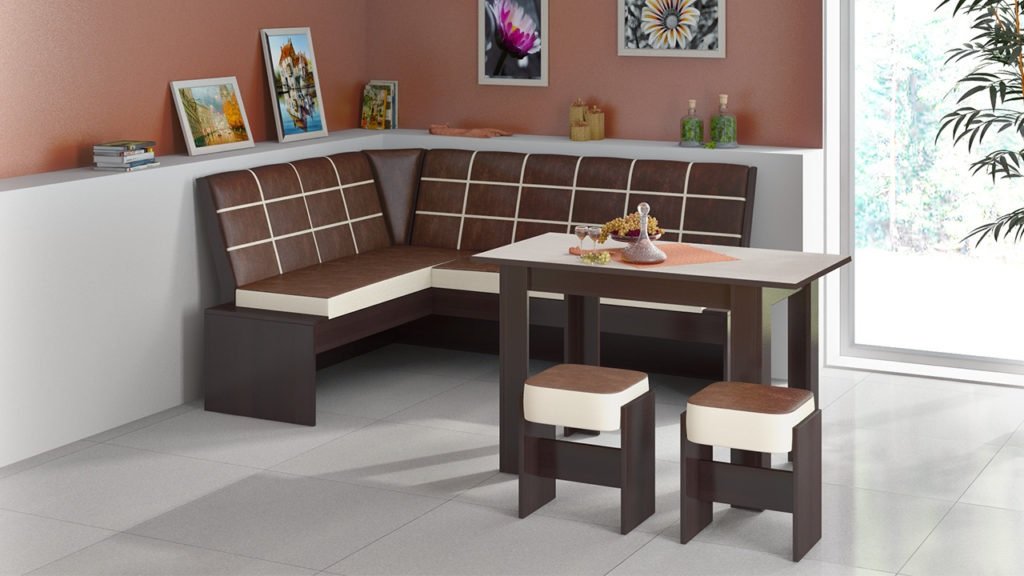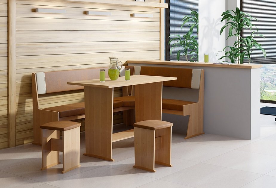 Los materiales enumerados se pueden seleccionar por separado o pedirles una combinación hermosa. Algunas compañías ofrecen de antemano a sus clientes que elijan una tapicería en el rincón de la cocina.