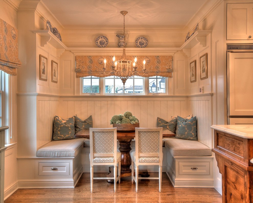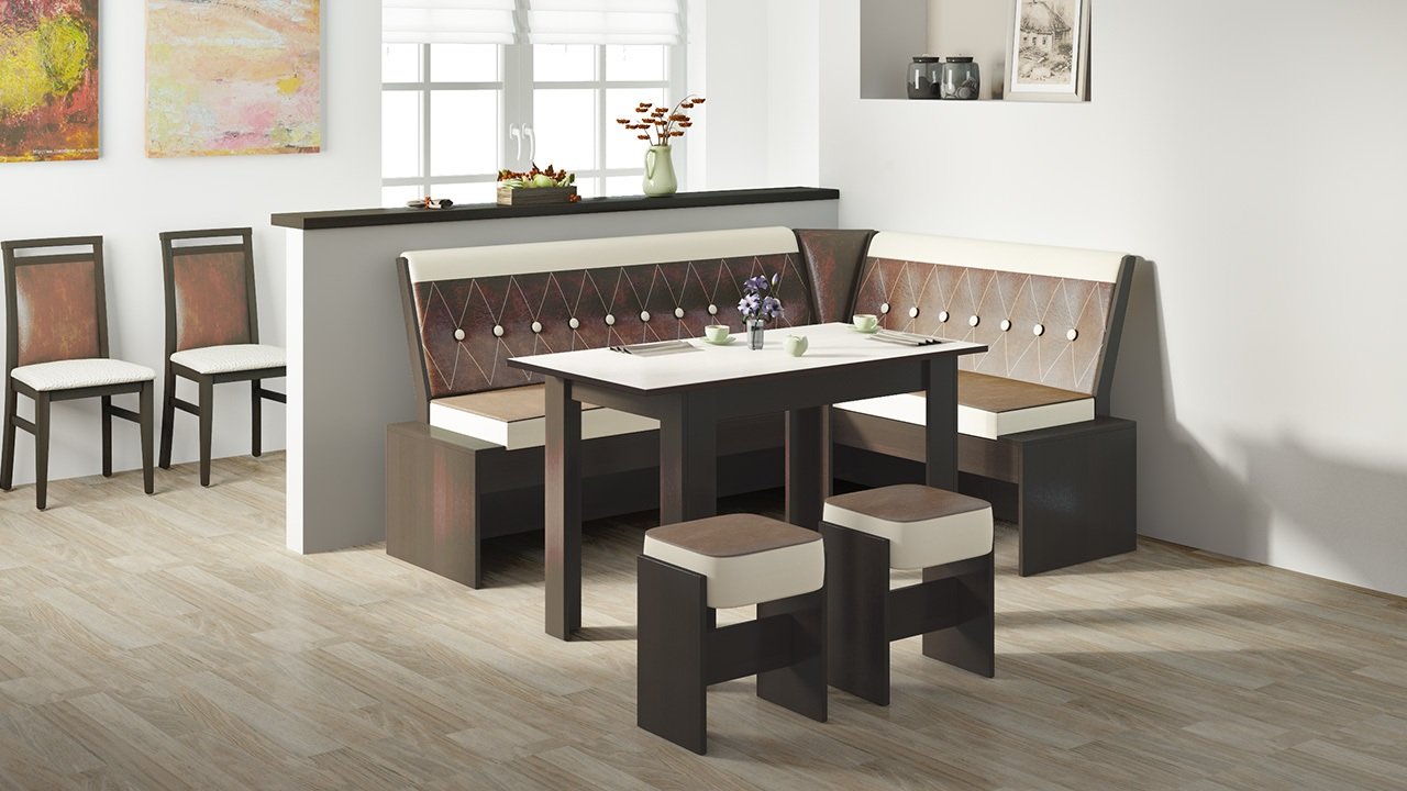 El diseño tradicional de la esquina de la cocina parece ser típico y monótono. Dos asientos con la forma de la letra "g", dos taburetes más, una mesa: este es un conjunto familiar de muebles. Usted pregunta: "¿Qué podría ser interesante aquí?" De hecho, un rincón de la cocina puede parecer no trivial y costoso, solo necesita conocer todas sus características.