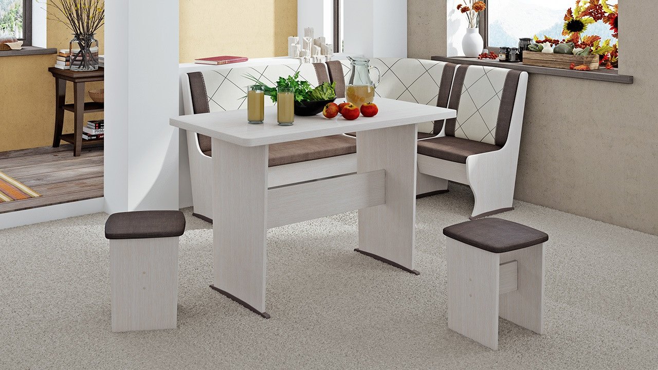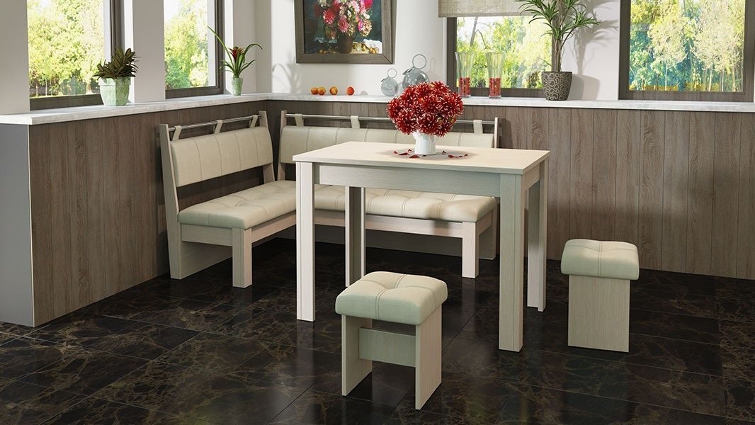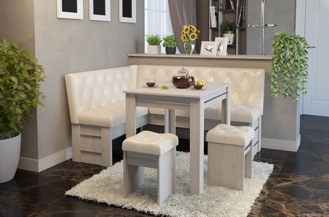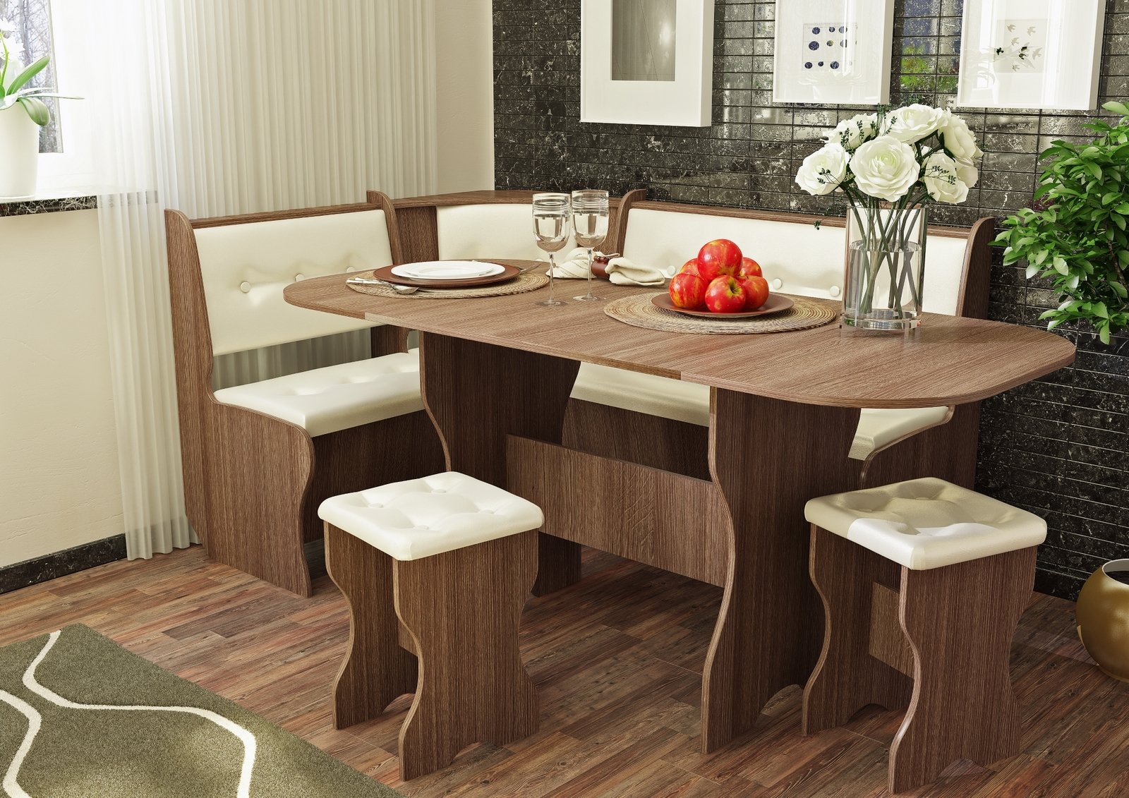 Los muebles de esquina son mucho más fuertes, más prácticos, más baratos que los grupos de restaurantes de pleno derecho. Un rincón en la cocina le da a la habitación comodidad y confort. Sirve como compartimento para almacenar cereales, verduras e incluso piezas de trabajo. La mayoría de los modelos incluyen no solo asientos y una mesa. Este grupo incluye dos o tres sillas, que, si es necesario, se pueden empujar debajo de la encimera.