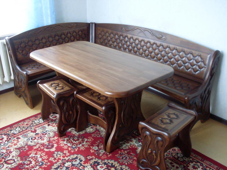 Las esquinas de cocina de madera son ideales para el interior de casas privadas, así como para casas de campo. Es la versión de madera de la esquina que se considera muebles de cabaña, también muebles para balcones, terrazas, terrazas, áreas de recreación al aire libre.