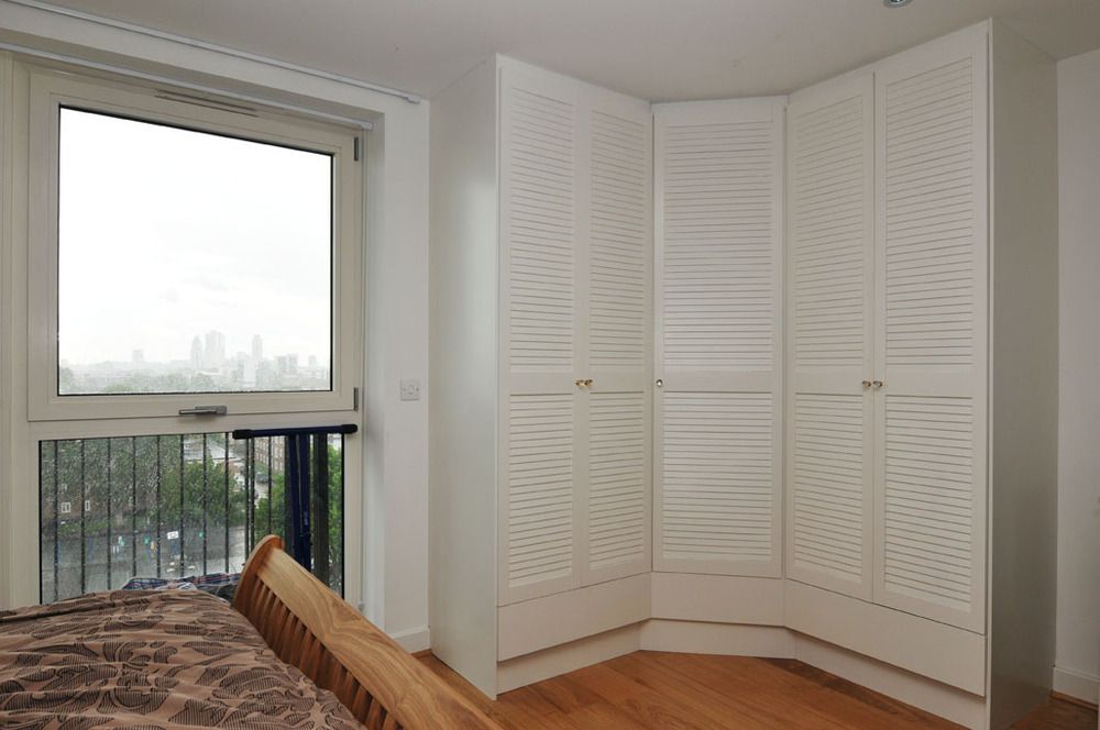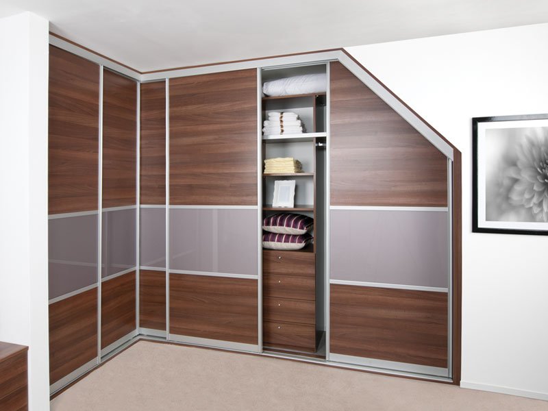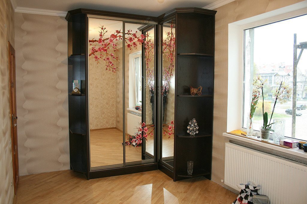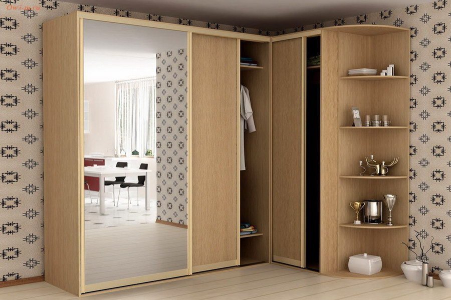 Triangular El diseño (tanto el estuche como el incorporado) se adapta fácilmente a cualquier esquina. El gabinete ocupa un espacio exiguo y no "interfiere" con los miembros del hogar. Es posible que no quepa en habitaciones de formas no estándar, donde las paredes están ubicadas en un ángulo diferente de 90 grados. Los armarios triangulares se encuentran entre los modelos de cupé más baratos.