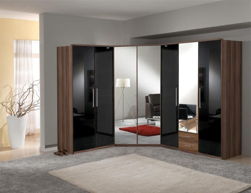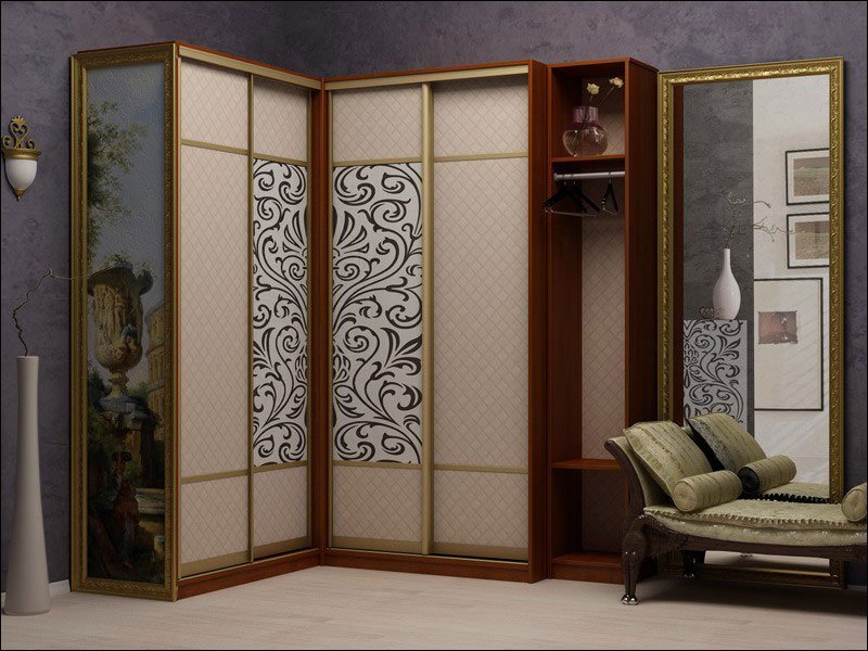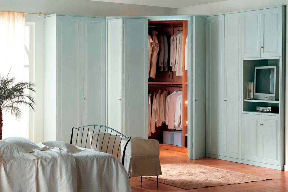Es importante saberlo. Para hacer que los muebles sean lo más invisibles posible y que la habitación sea más voluminosa, use los modelos clásicos de gabinetes de esquina. Algunas de sus fachadas están tradicionalmente decoradas con espejos. Una superficie reflectante agranda visualmente la habitación.