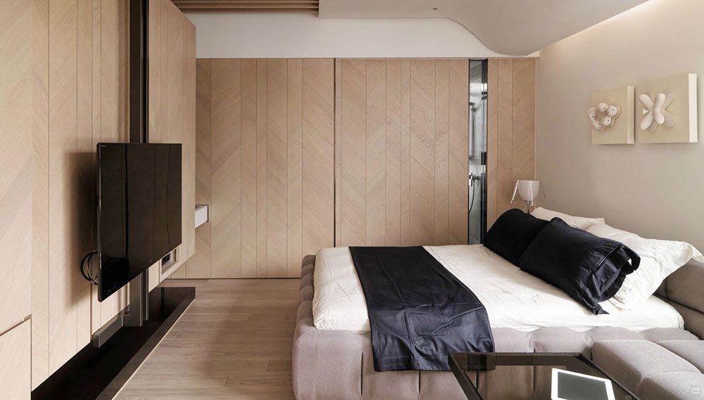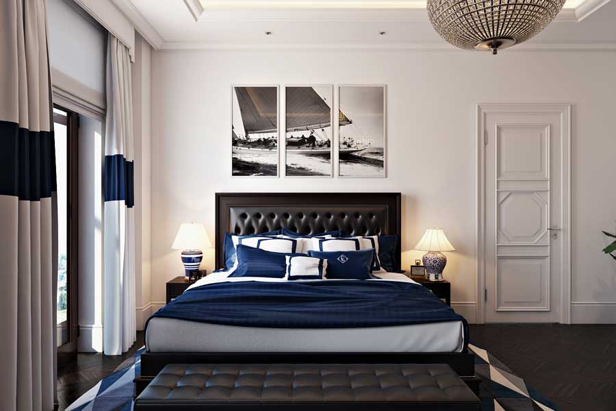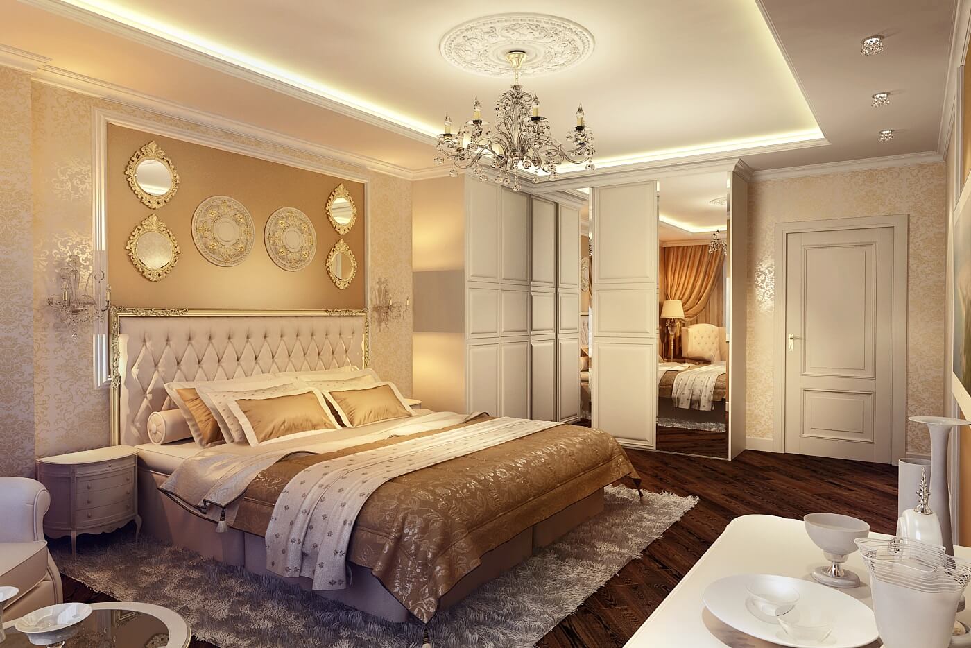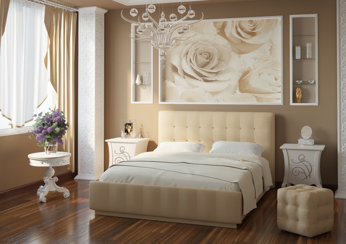 La disposición de la habitación comienza con la instalación de la cama. Si la habitación es grande (de 15 m2), no habrá problemas para elegir un lugar, casi cualquier esquina o pared servirá. La colocación adecuada en una habitación más pequeña le permitirá mantener la armonía con el resto de los muebles, aumentar visualmente el espacio. Antes de comprar muebles, se miden los parámetros, incluidas las habitaciones. Debe tenerse en cuenta que la distancia mínima para un pasaje normal es de 70 cm. Por cierto, será útil crear un diagrama con un plano de la habitación.El espacio está planeado con un margen, y antes que nada estamos hablando de ventanas abatibles, puertas batientes. Como resultado, cuanto menos espacio libre, más se inclina la cama hacia las paredes. En una habitación espaciosa con un gran volumen o con una pequeña cantidad de muebles, el diseño se forma con el centro en forma de litera. En este caso, el diseño se hace lo más simétrico posible. Además, las habitaciones grandes le permiten colocar la cama de acuerdo con los puntos cardinales, como dice la filosofía china del Feng Shui.