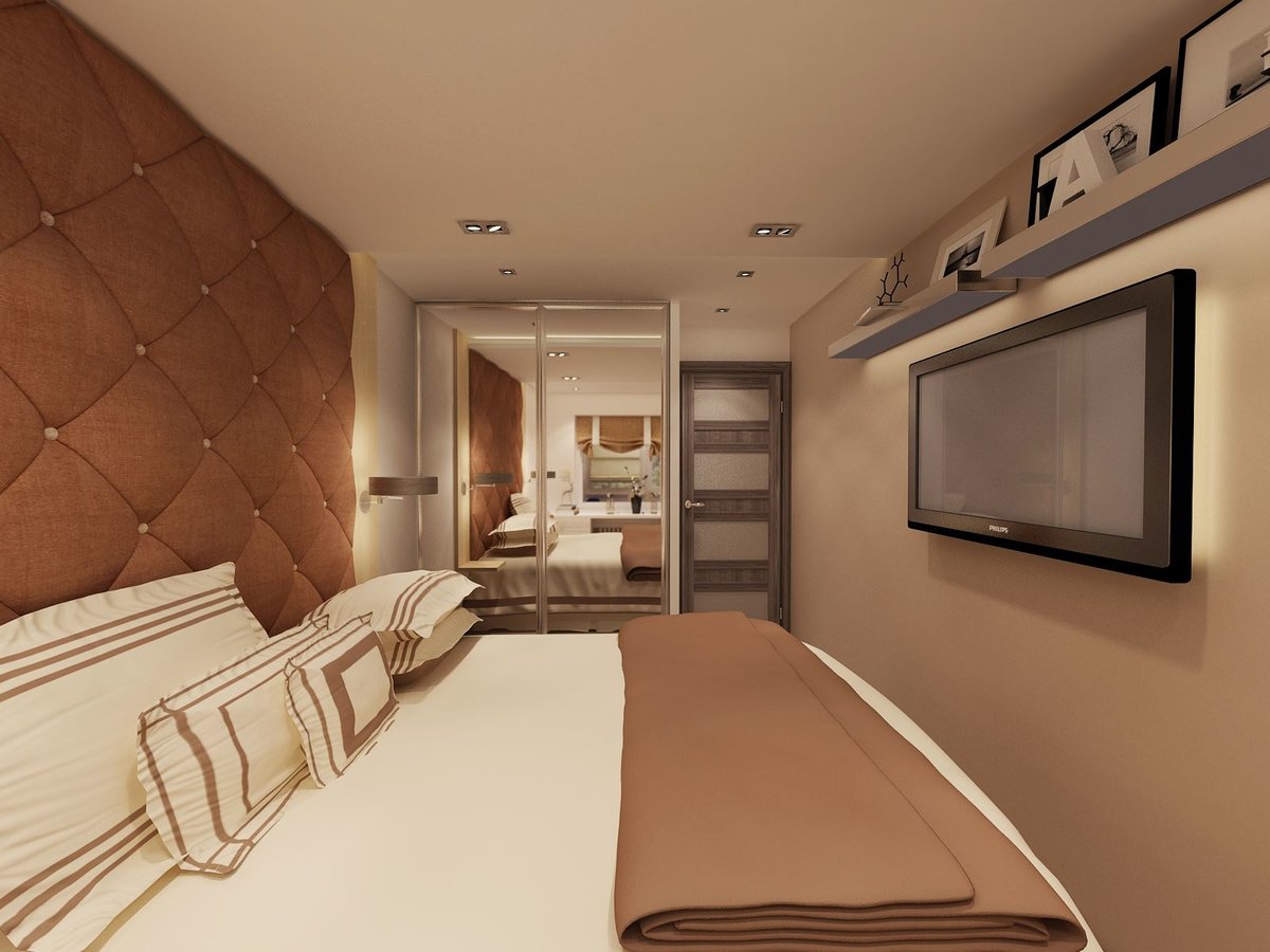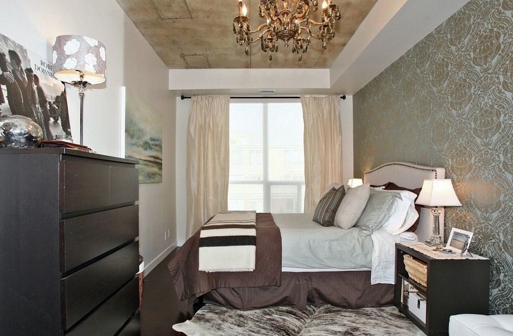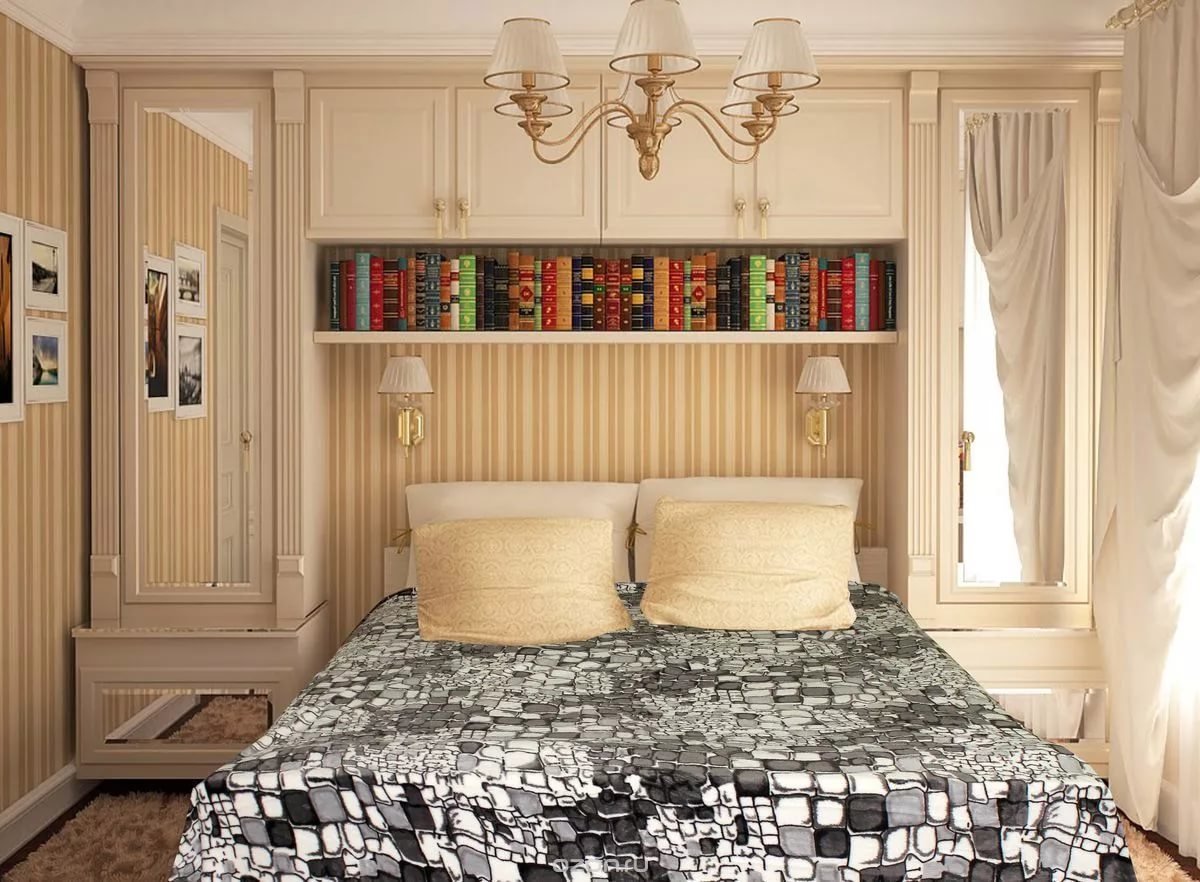 En una habitación con un ancho ligeramente superior a la longitud de la cama, los muebles se pueden colocar en solo unas pocas opciones. La litera se coloca de lado a la pared (si una de ellas es más larga, entonces al lado de la más larga). Por otro lado, habrá más o menos paso libre. Dependiendo del tamaño total de la habitación, uno o dos extremos de la cama quedan libres. El pie, por ejemplo, puede estar adyacente a una de las paredes o a la ventana. Pero hay una opción alternativa, en la que la cabeza está montada en la pared al lado de la puerta. No habrá inconvenientes con la disposición de una cama individual, pero hay algunas dificultades con una cama doble, ya que alguien tendrá que trepar sobre la cama o ir al lado del pie. Si no hay lugar para los pasajes, los muebles para dormir se colocan al final de la habitación, en la mayoría de los casos, cerca de la ventana, con un pie hacia la puerta.