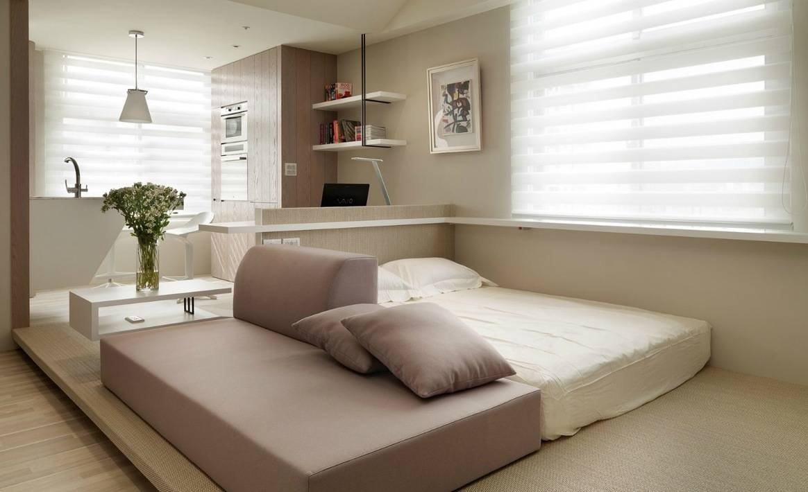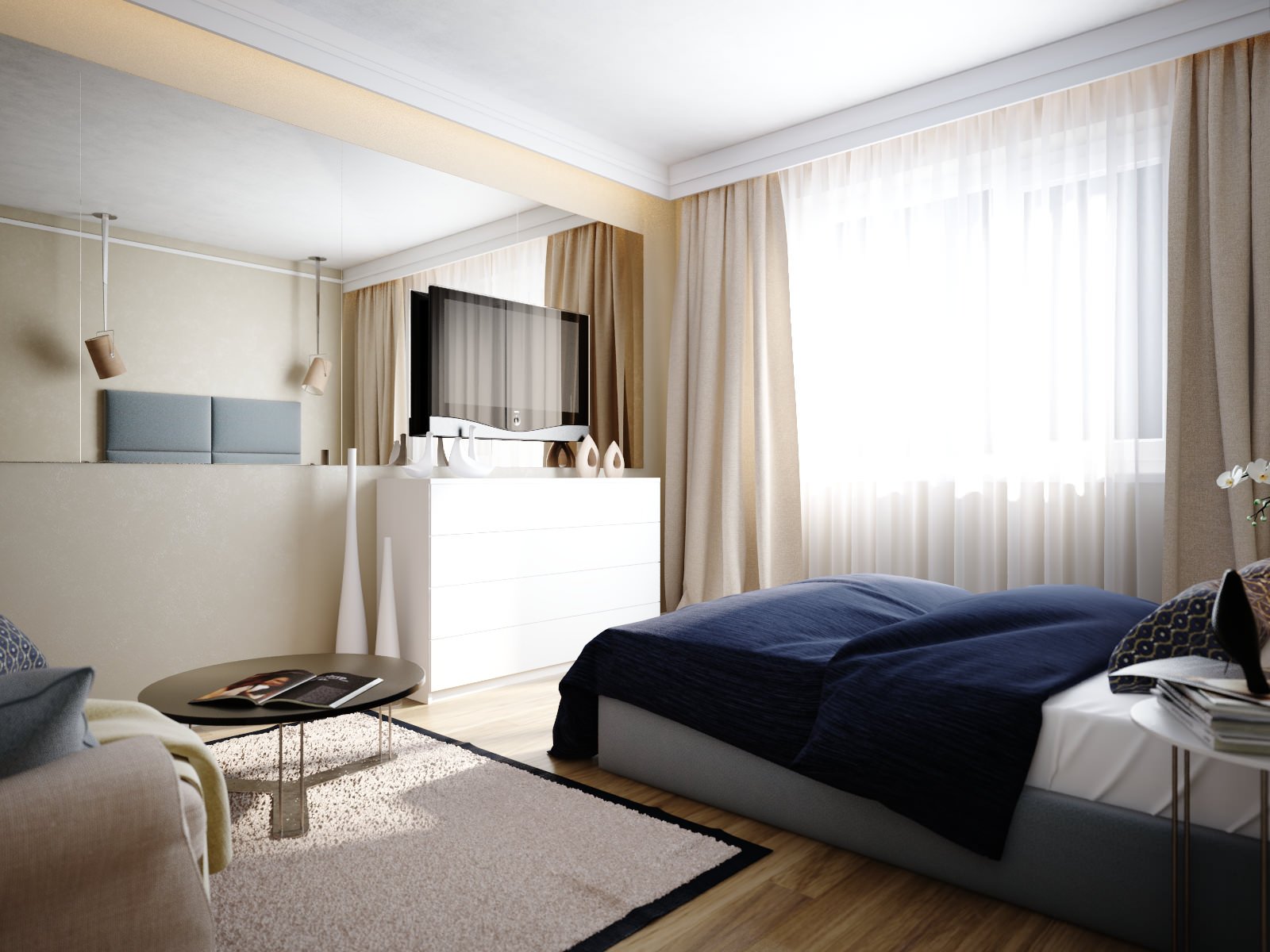 Mobiliario y planificación de viviendas de una habitación es un proceso complejo y que requiere mucho tiempo. La tarea principal es preservar la funcionalidad y el espacio libre con una gran cantidad de muebles. Los muebles de dormitorio deben instalarse según estos principios.Sin embargo, debe cumplir con varias reglas que son relevantes tanto para viviendas de una habitación ordinarias como para apartamentos tipo estudio de la misma área. El primer aspecto se refiere al uso de elementos de mobiliario multifuncionales. Estas son camas con módulos, estantes, cajones, literas transformadoras. El segundo matiz es la zonificación. Esta técnica facilita la orientación en el espacio. Los aparadores, un estante o una pantalla harán frente a la tarea de asignar un área para dormir en un apartamento tipo estudio. El tercer aspecto es el esquema de color. Puede enfatizar aún más las áreas funcionales y aumentar visualmente el espacio.