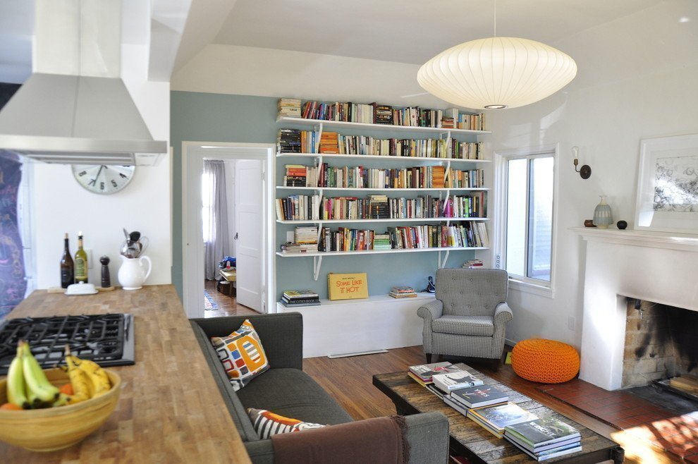 Por lo tanto, las estanterías se pueden colocar en cualquier habitación. Además, no es necesario usarlos solo para su propósito previsto. Para dar originalidad al interior, puede complementarlos con pinturas, carteles, recuerdos o fotografías. Si prefiere productos montados en la pared, no los coloque a una altura demasiado alta. Entonces serán más hermosos y más funcionales. Por ejemplo, es muy conveniente acercarse a un libro sin levantarse de su silla favorita.