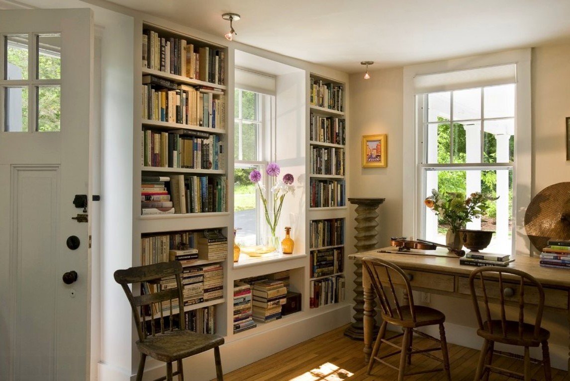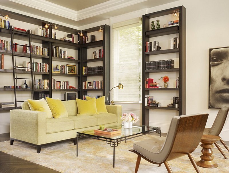 Los estantes hermosos, elegantes y convenientemente ubicados con libros tienen que relajarse y descansar. Varias páginas del querido autor, leídas en silencio y tranquilidad, ayudarán a olvidarse temporalmente de la inutilidad y el dinamismo de la vida cotidiana.