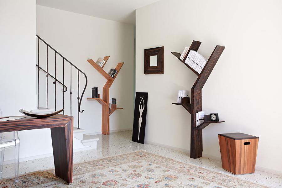 ¿Quién dijo que una biblioteca hogareña ciertamente debería ser hileras aburridas de estanterías o estanterías, como en una biblioteca normal? Después de todo, es posible hacerlos no solo un depósito de sabiduría de papel, sino también un elemento de diseño original, una decoración real del interior. Considere las opciones más interesantes que sin duda le gustarán. Tal vez quieras hacer algo similar al pedido o por tu cuenta.
