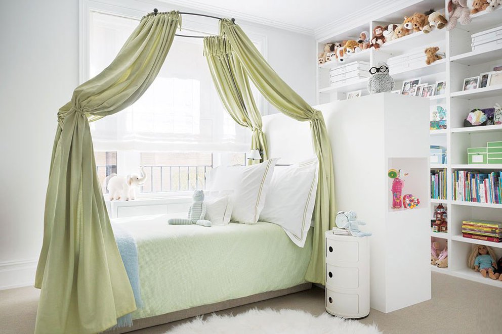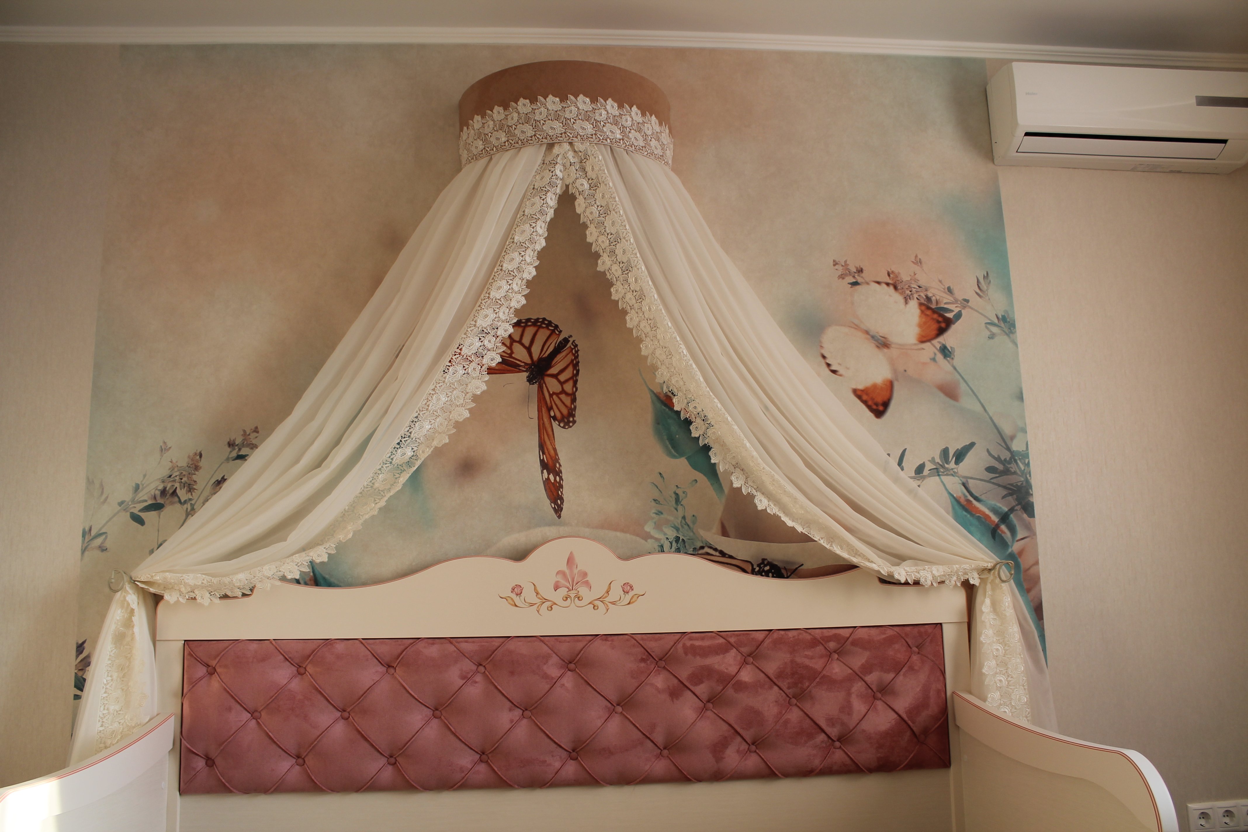 Si desea equipar su litera con un dosel, recuerde que el diseño voluminoso puede reducir visualmente la habitación ya pequeña. Por lo tanto, es mejor elegir una estructura de suspensión con cortinas hechas de material ligero y delgado o abandonar por completo ese detalle. Si las dimensiones de la habitación lo permiten, le recomendamos que vaya a una tienda de muebles donde pueda encontrar el modelo correcto.Como opción, solicite su fabricación en el perfil de la empresa.