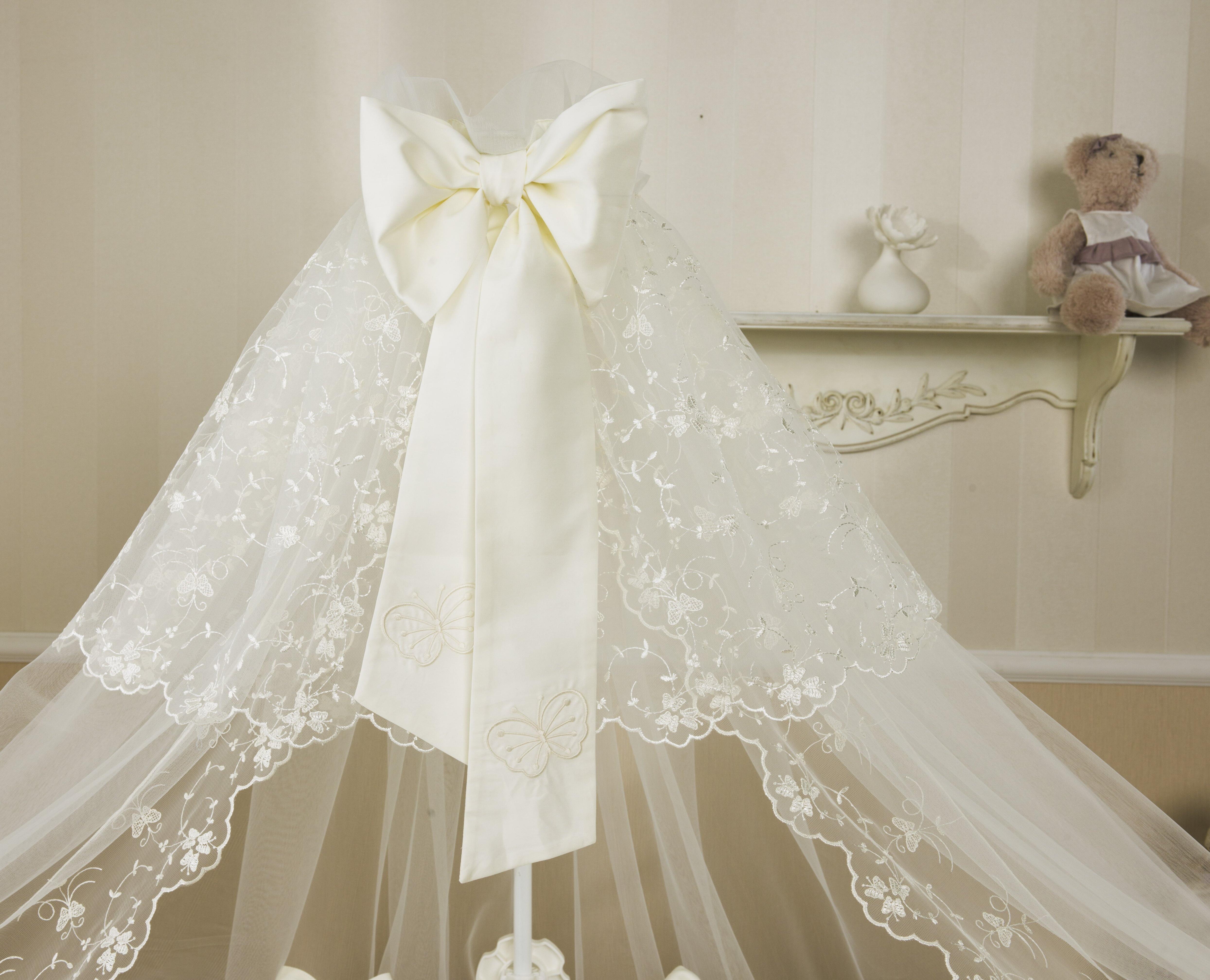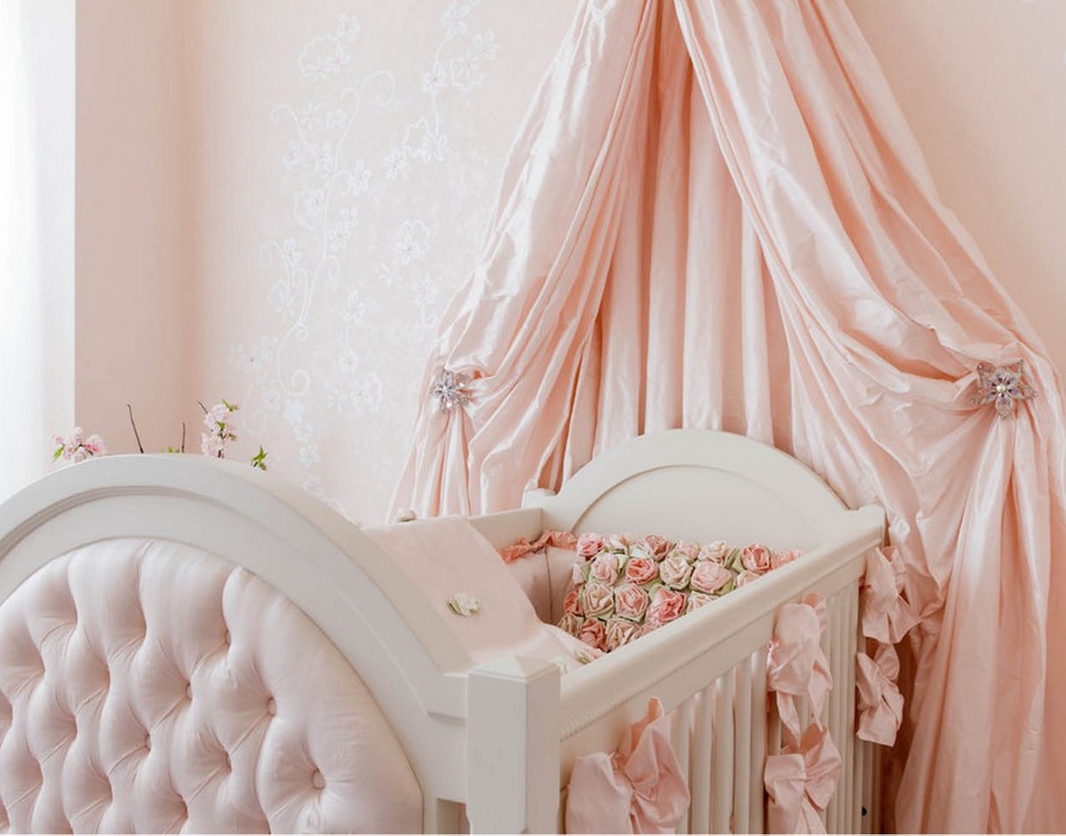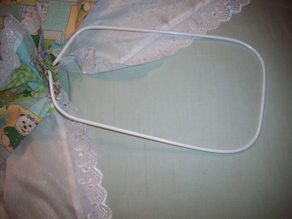 Es mejor equipar la cuna con el recién nacido con un diseño en el estante, que será integral con la cuna. Este diseño será más fácil de mover. La tela que cuelga del soporte cubrirá toda la cuna.