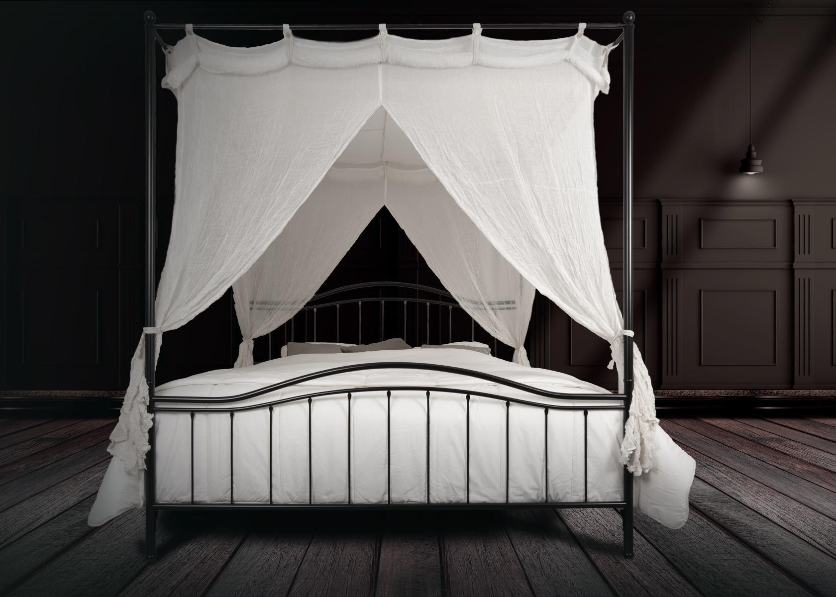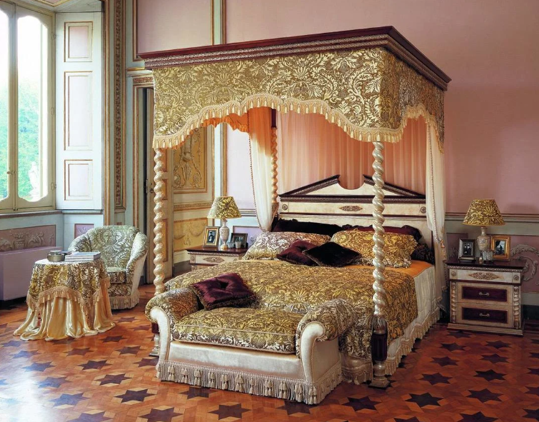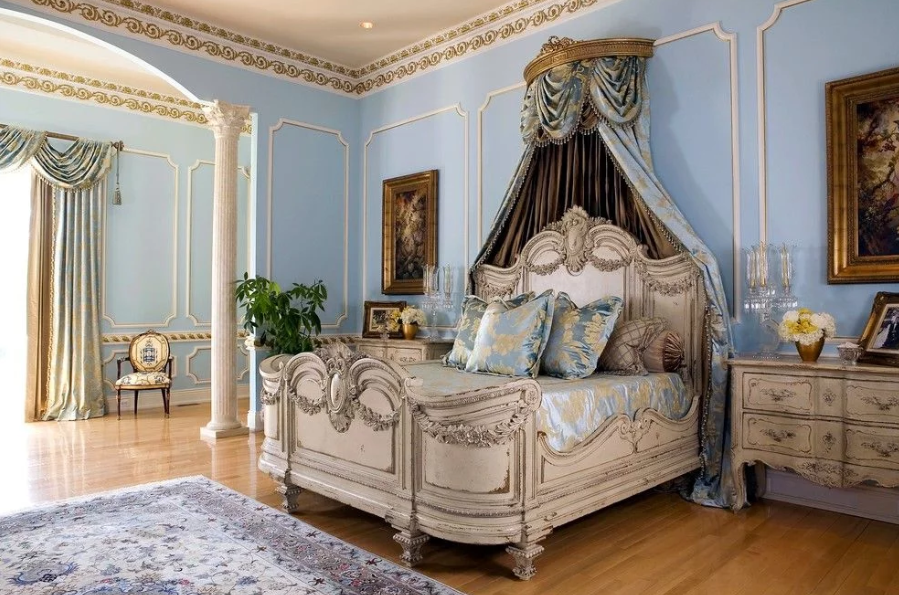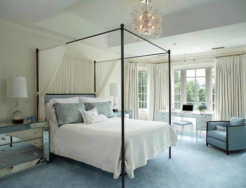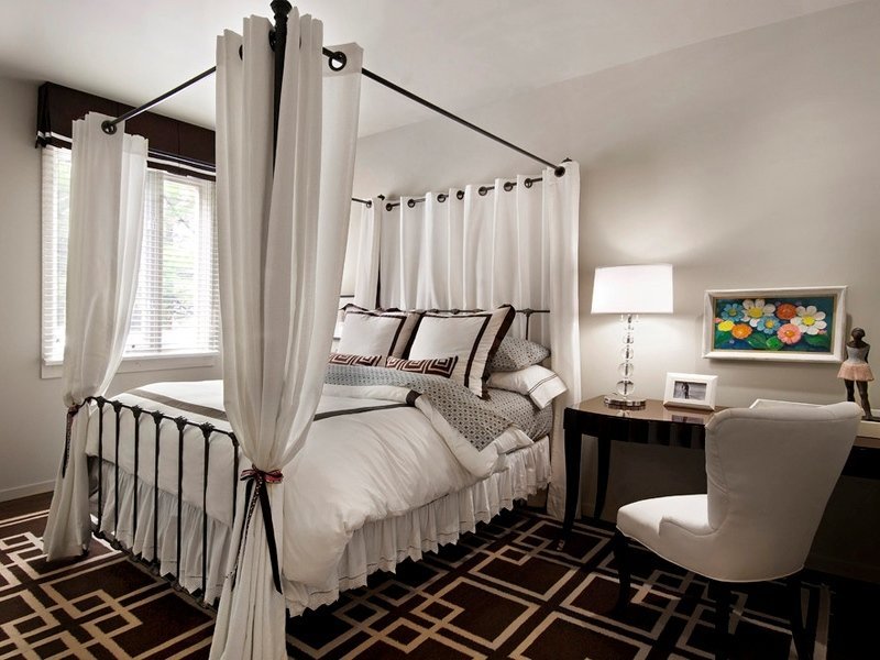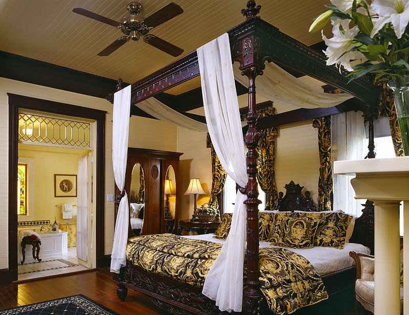 La cama con dosel es el personaje principal de la habitación. Debería establecer el tono para todo el interior.