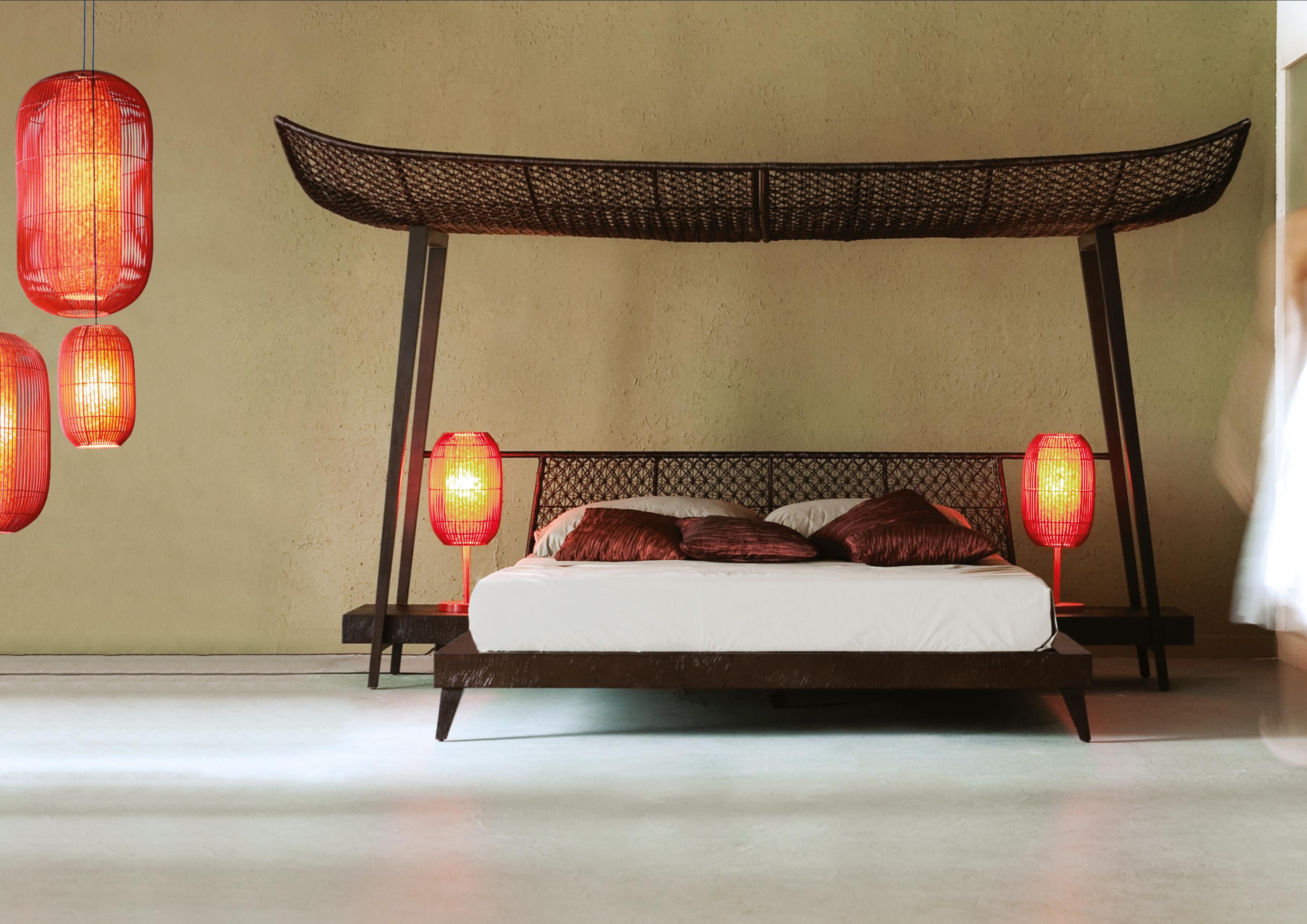 Japonés El minimalismo moderado del Imperio Celestial, por el contrario, requiere rigor y concisión. Se prefieren tonos claros y formas nítidas. El dosel trae una nota de comodidad en un estricto espacio vacío.