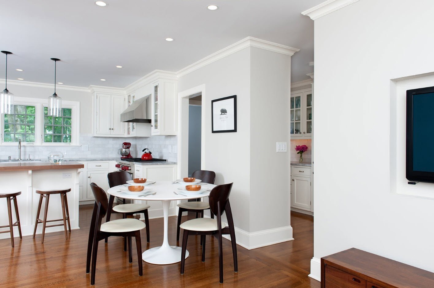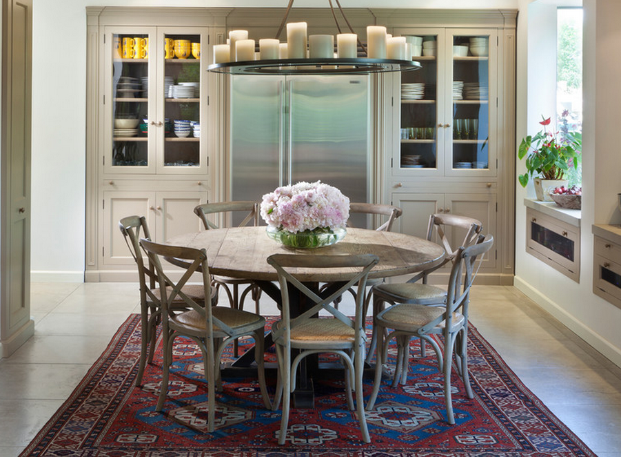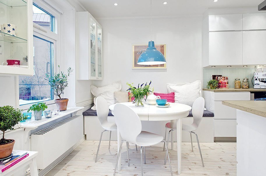 La decisión más correcta al elegir un lugar para instalar una mesa no estándar será su ubicación en la cocina. Se recomienda instalarlo lejos del área de trabajo: en el área de recreación. Debe tenerse en cuenta que el nuevo elemento debe parecerse a un juego de cocina ya instalado. Pueden ser similares en estilo, color. Por ejemplo, al elegir modelos de madera, se recomienda seleccionar productos que complementen visualmente los gabinetes y gabinetes de madera, MDF. Los modelos no estándar son adecuados para la instalación en comedores. La elección de sillones y sillas adecuados ayudará a crear un grupo completo de muebles para comer. En la cocina-comedor combinada puede instalar un sofá semicircular. Tales adiciones deberían crearse con el nuevo producto en tándem. Entonces la vista general de la habitación equipada será armoniosa.