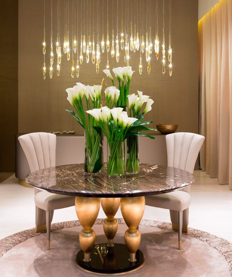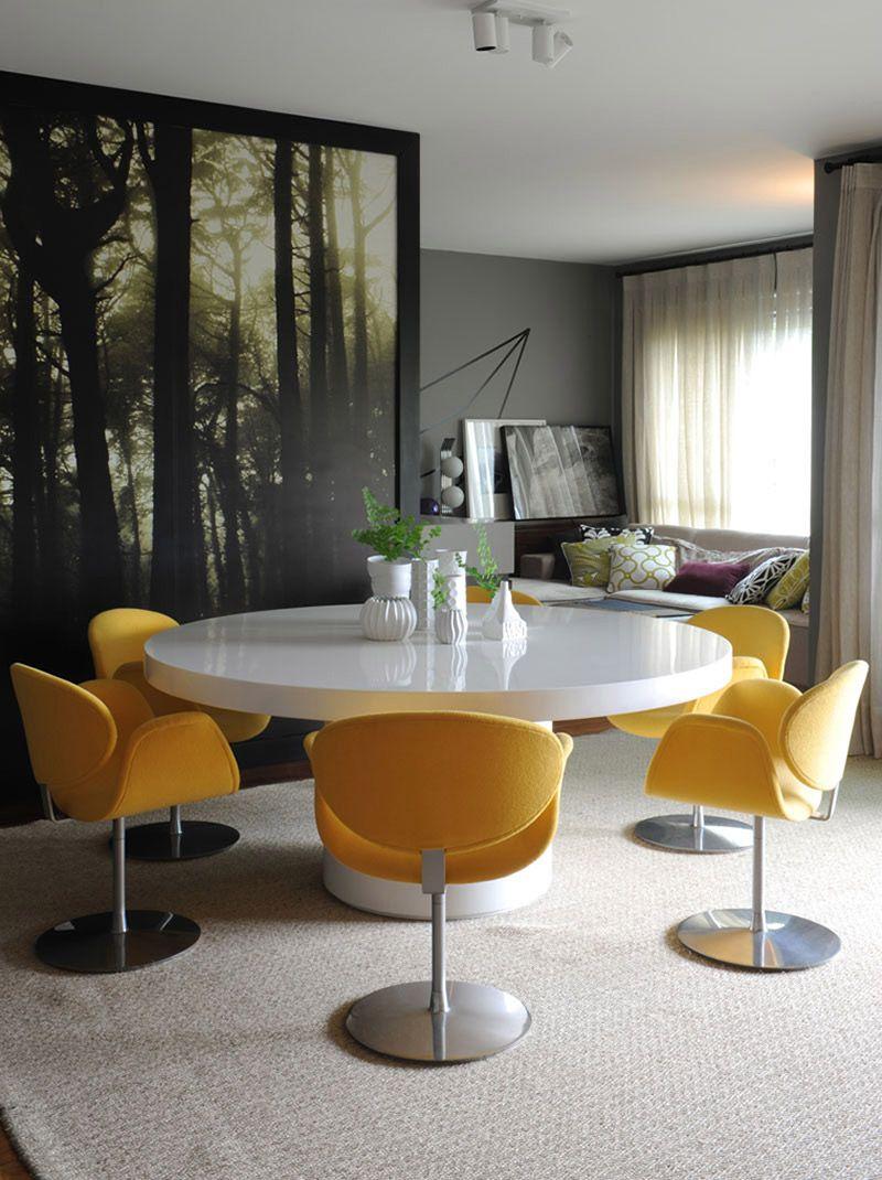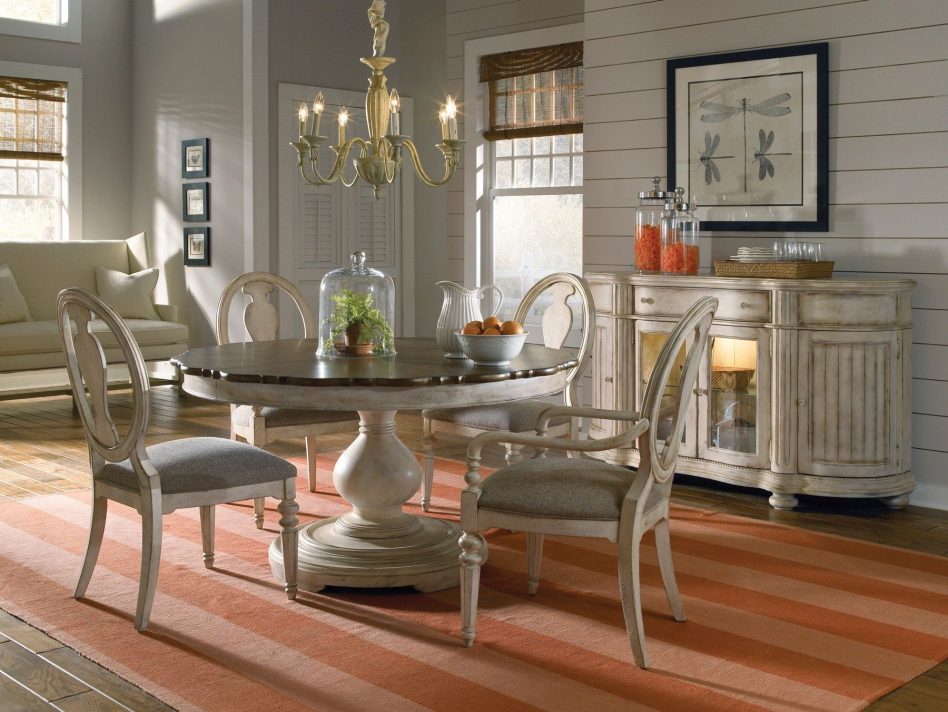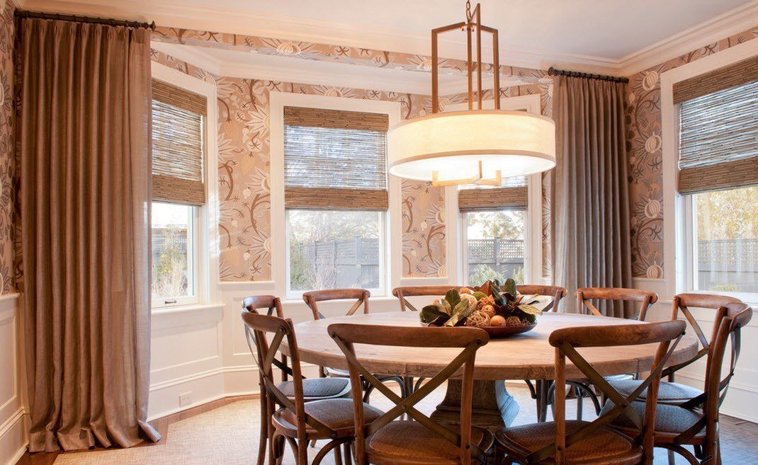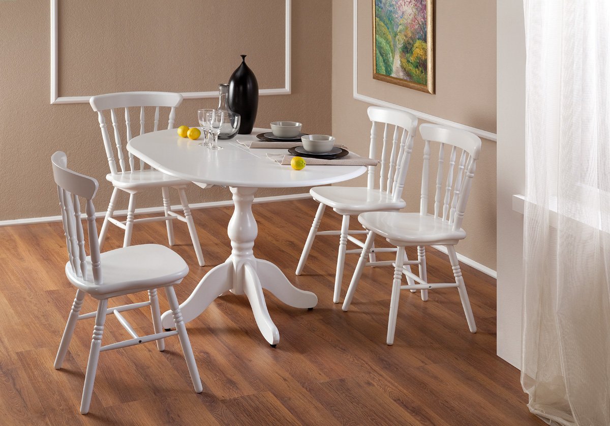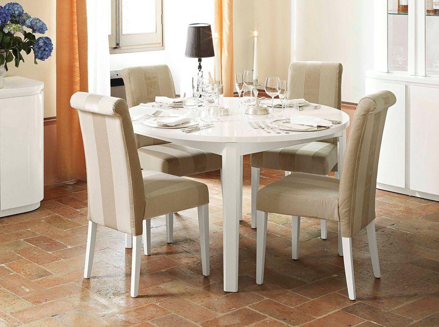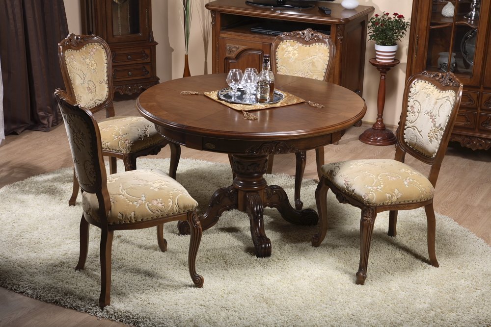 Al elegir un modelo de comedor adecuado, debe tener en cuenta las dimensiones reales de la encimera. No debe limitar el espacio libre de la habitación. Al mismo tiempo, el pequeño tamaño de los muebles no debería afectar la usabilidad. Para una familia de 3-5 personas, un modelo con una encimera con un diámetro de 0.8-1 metro será suficiente. Para que tanto los anfitriones como los invitados puedan celebrar fiestas cómodamente, se recomienda elegir un modelo plegable. Detrás podrá acomodar a más de 10 personas.Los muebles transformables se presentan en un movimiento circular insertando una barra central adicional. El primer tipo tiene un precio alto, pero cuando se despliega, su encimera tiene la forma de un círculo. El segundo tipo después del despliegue tiene la forma de un óvalo. Tiene un costo accesible. Para salas de estar, puede seleccionar modelos con cualquier diámetro adecuado para la instalación cerca de una ventana o sofá.