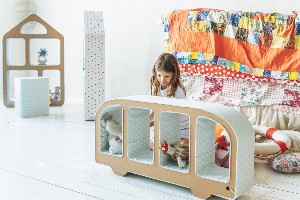La durabilidad de los productos terminados de cartón adecuadamente diseñados y procesados no es inferior a los muebles de aglomerado y madera contrachapada. Cada habitación de un apartamento o casa se puede transformar con éxito utilizando elementos originales. En el alféizar de la ventana en la guardería, puede colocar una casa luminosa para Barbie, en el piso para colocar una mesa y sillas de cartón. Los estantes del piso de cartón pegados en varias capas en forma de animales y pequeños hombres se verán geniales.