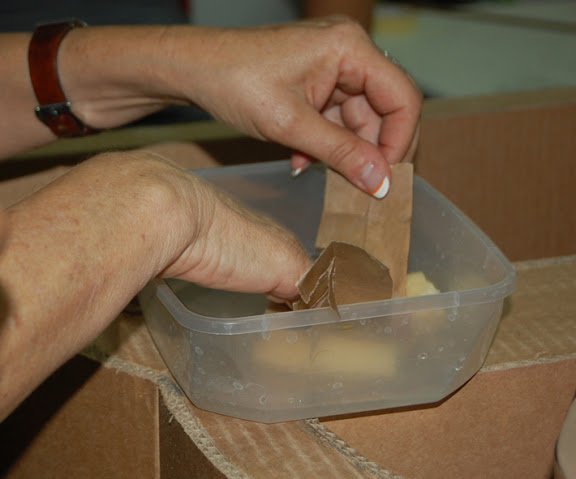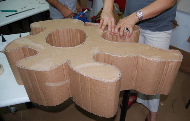 Después de un procesamiento cuidadoso, comienzan a ensamblar y sujetar todos los elementos juntos. Los cartones se pueden unir utilizando ranuras especiales, cinta adhesiva y pegamento. Para que el producto tenga una apariencia ordenada, las irregularidades en los lugares de cortes y juntas se sellan con masilla.
