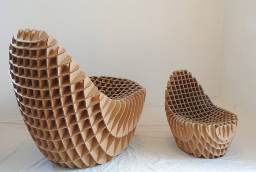 El diseño original. Puedes crear cosas únicas para patrones inusuales. Los sofás con pequeños panales, casas de muñecas en pleno crecimiento de un niño se ven hermosas, las mesas con patas de cartón rizado se ven hermosas.