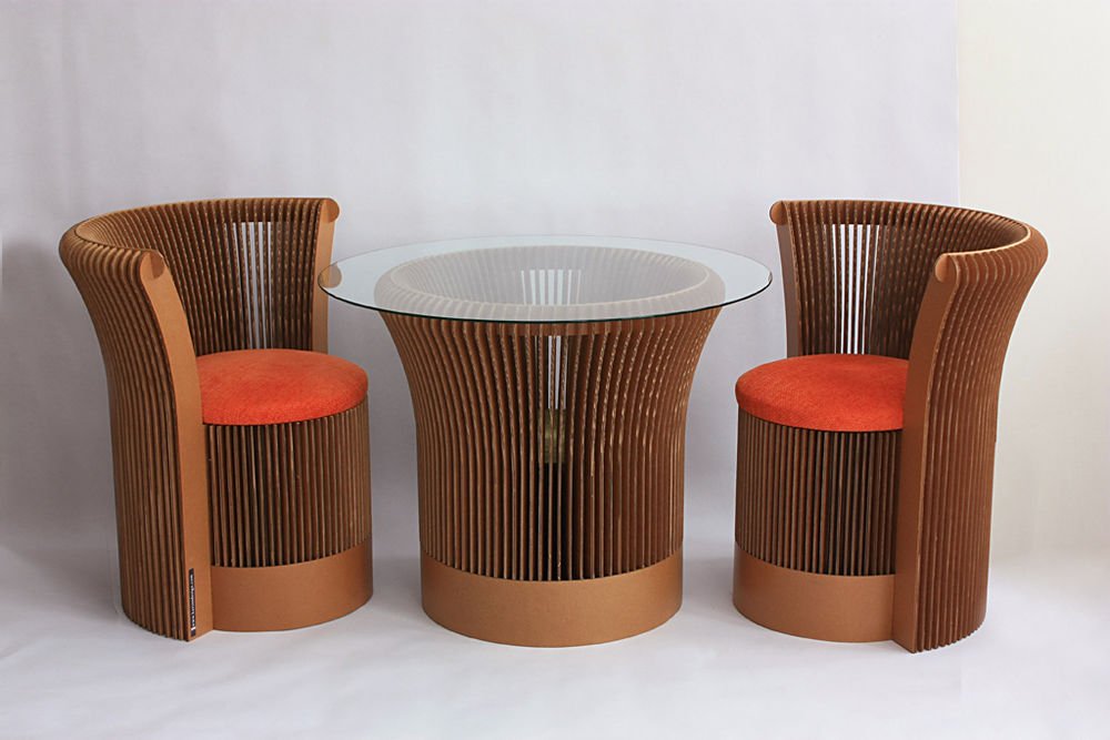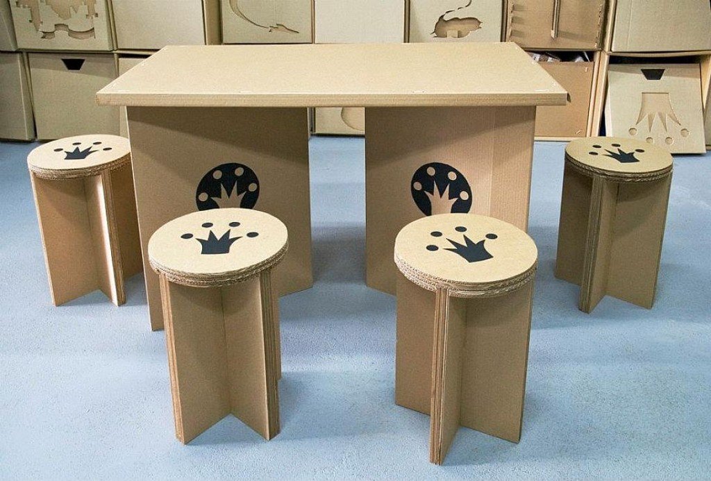 Las mesas y sillas de diseño hechas de cartón se encuentran cada vez más en cafeterías y restaurantes. Los artículos hermosos y baratos pueden durar varios meses sin perder su apariencia original. Se pueden reemplazar rápida y simplemente por otras similares, sin violar el estilo general de la institución.