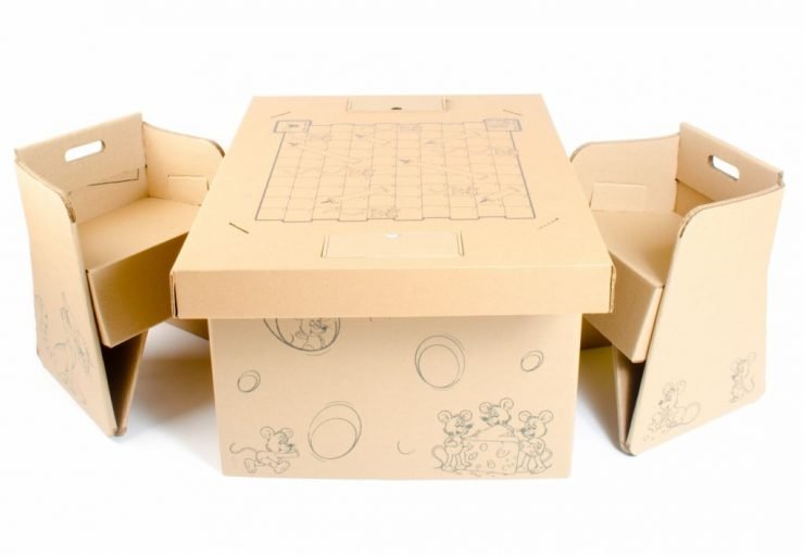 Ligereza y movilidad. Los muebles de cartón pueden ser movidos incluso por un niño. Puede cambiar fácilmente la ubicación de un sofá enorme, hecho de acuerdo con la plantilla de una gran sala de estar.