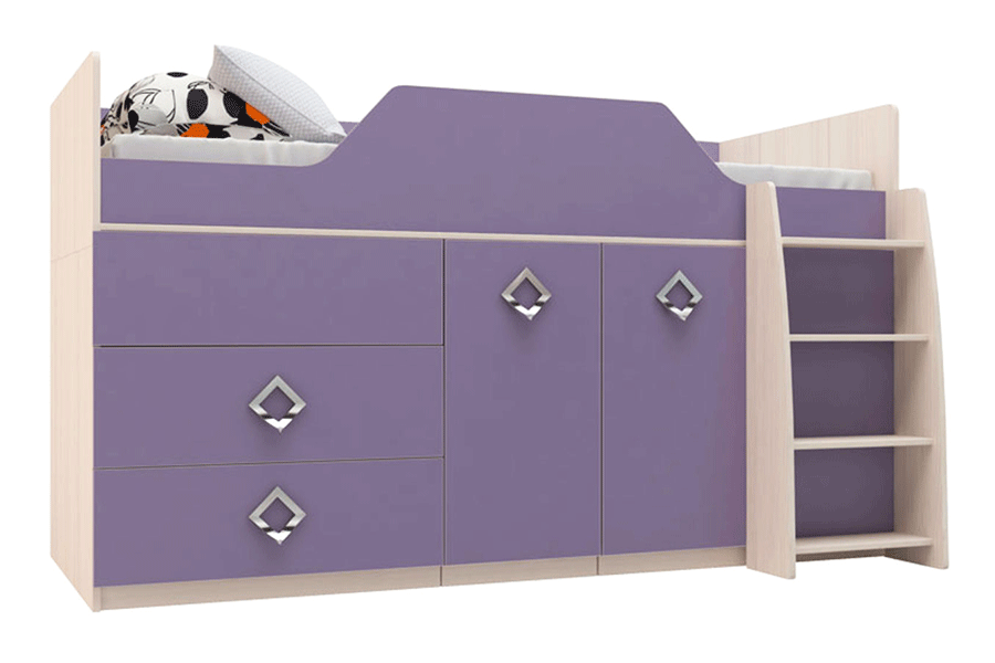 Cama alta para un niño. En la parte inferior hay cuatro o seis cajones de diferentes tamaños para almacenar ropa, juguetes, libros, en la parte superior hay un lugar para dormir, al que conduce una escalera;