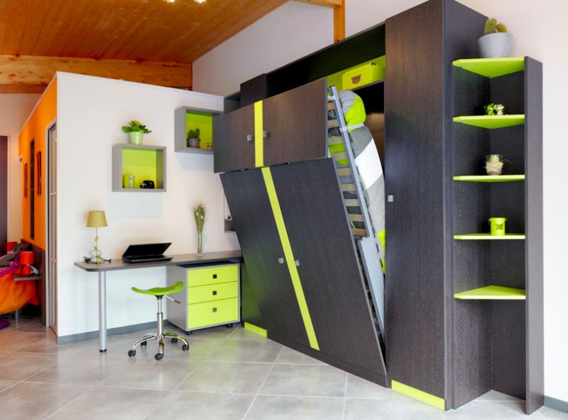 Un interior moderno debería ser conveniente para todos los miembros de la familia, independientemente de su edad, sexo u ocupación. Al mismo tiempo, se tiene en cuenta que cada persona tendrá muchas cosas personales, por lo tanto, la organización competente de almacenamiento pasa a primer plano. Cualquier mueble transformador combina varias funciones diferentes, siendo, al mismo tiempo, un lugar para dormir y almacenar ropa, relajarse durante el día y trabajar en una computadora, almacenar pequeños electrodomésticos y té.