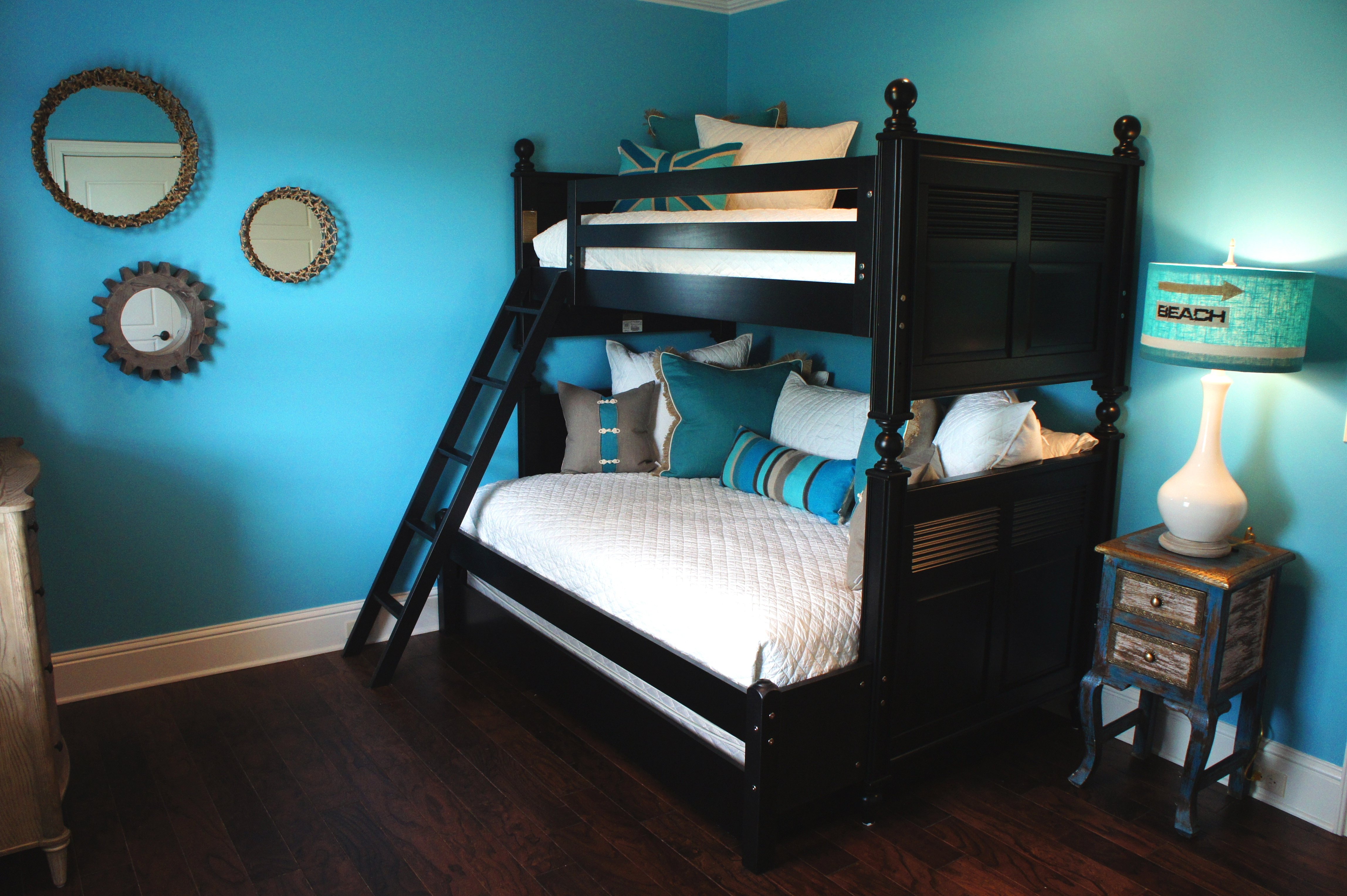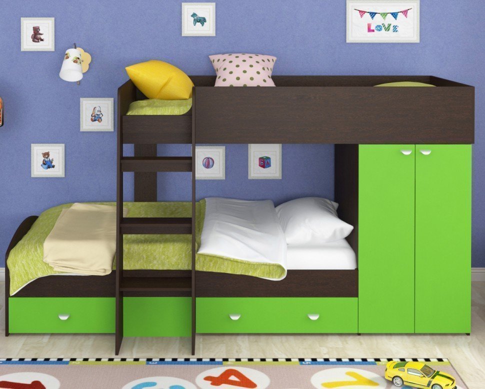 Algunas personas piensan que el wengé no es una buena opción para decorar una habitación infantil. En realidad, esto no es así. Si se usa en pequeñas cantidades, tendrá un efecto calmante sobre la percepción emocional. Los muebles combinados con áreas oscuras y claras de madera son perfectos aquí. El diseño de la habitación infantil a menudo usa colores brillantes. Los tonos chocolate de wengué pueden amortiguar los colores llamativos y hacer que la habitación sea más relajada. La madera oscura es capaz de disciplinar y favorecer el aprendizaje. Un escritorio de wengué será útil en la habitación del estudiante.