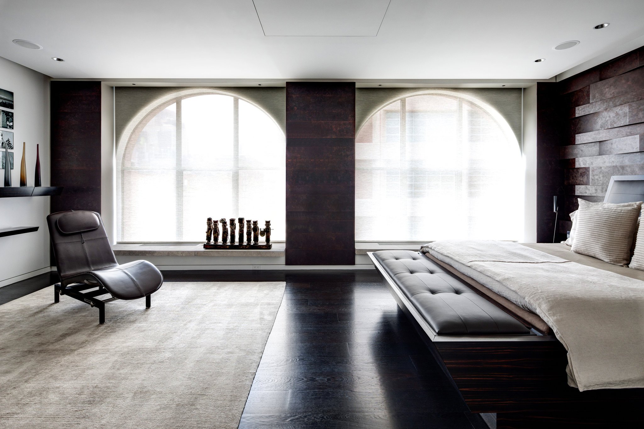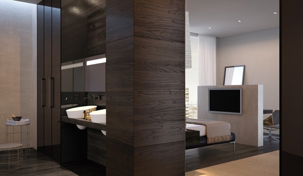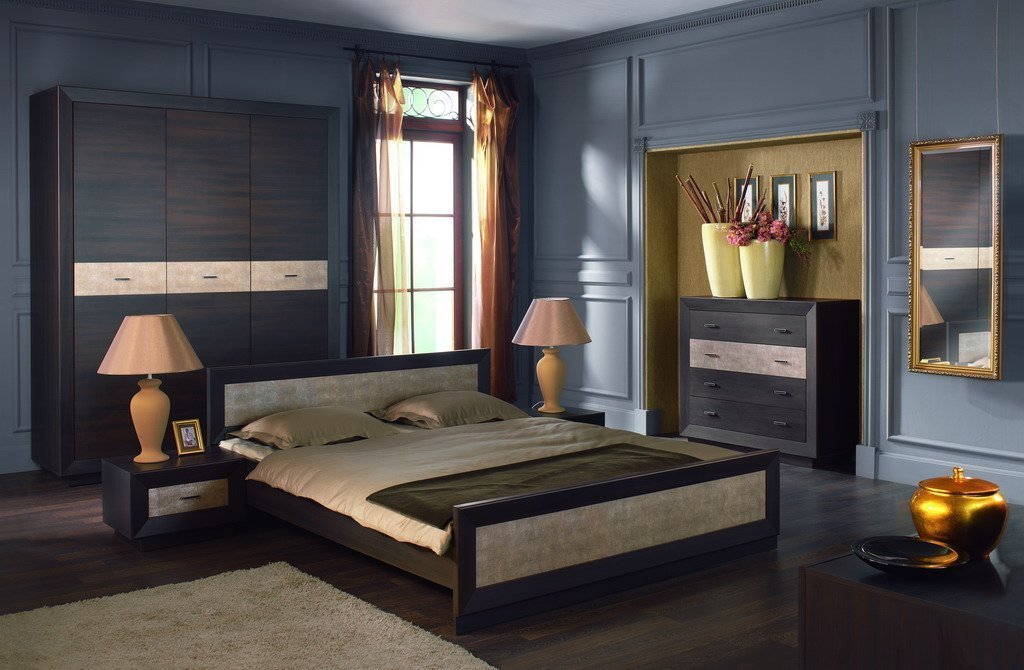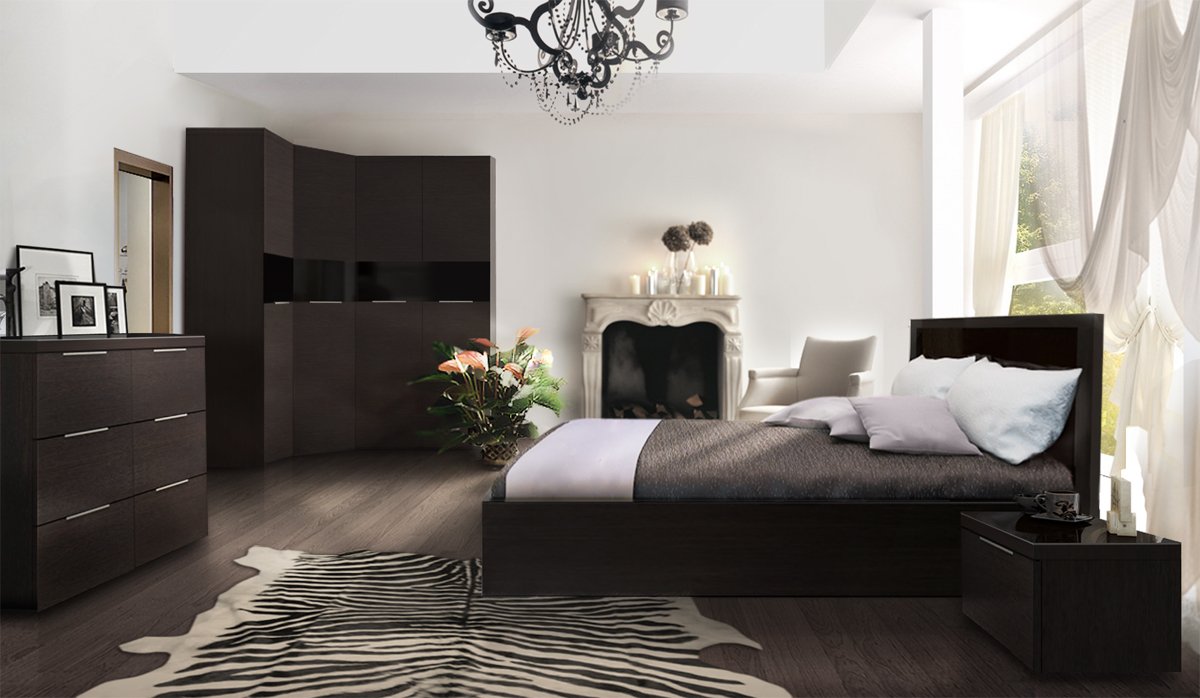Los auriculares, las camas, las mesas, las mesitas de noche, las cómodas y otros artículos interiores hechos de wengué agregarán lujo a cada habitación.También es una opción muy práctica para el baño, la madera no se deteriora por la alta humedad. Los muebles Wenge rara vez se usan para amueblar habitaciones infantiles, pero en algunos proyectos esta solución puede ser muy exitosa. En cualquier otro local residencial, los tonos chocolate de los muebles serán apropiados con un diseño interior adecuado.