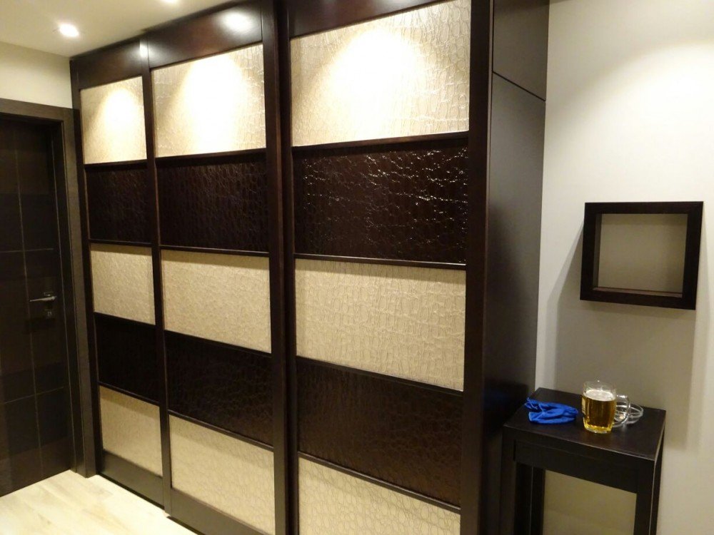 Hoy, numerosos fabricantes producen productos que imitan una costosa variedad de madera. Este acabado repite exactamente las propiedades externas, también se ve refinado y presentable, pero de calidad inferior a un árbol real. La chapa decorativa también está hecha de macizo natural, que decora los paneles externos de los muebles.Gracias a esto, las personas de ingresos medios pueden agregar elementos de lujo exótico al interior.
