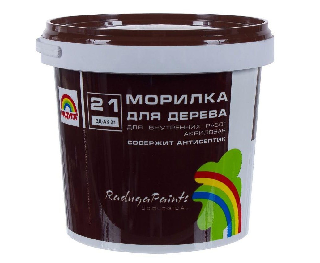 La mancha a base de agua se puede usar fuera y dentro de la sala de estar. No tiene olor desagradable, es absolutamente no tóxico. La composición tiene un bajo consumo, fácil de aplicar. De las desventajas, se puede observar una pobre resistencia al agua. Después de la aplicación, las fibras de madera se elevan, lo que abre el camino a la humedad. La superficie pintada se seca durante mucho tiempo: 12-15 horas. No recomendado para especies de madera resinosa.