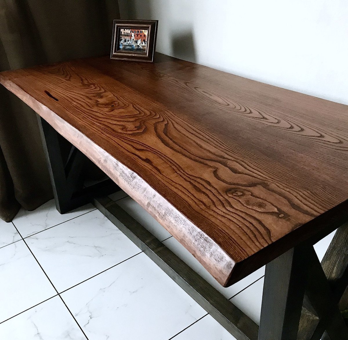 Aplicación de la mezcla de tintado. Comienza a teñir después de que el árbol se haya secado por completo.Aplicamos una capa de color, eliminamos el exceso de manchas con un paño.