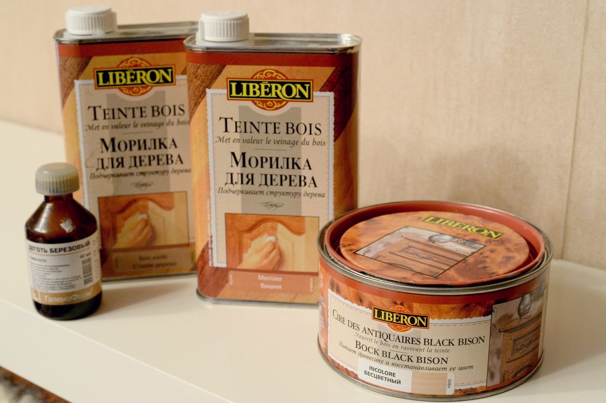 Se libera una mancha en forma líquida, más a menudo es una composición de color oscuro que puede dar a un árbol un tono translúcido.Con su ayuda, puede cambiar radicalmente la apariencia de los muebles. El líquido penetra profundamente en la madera, cambiando su esquema de color sin violar la textura y el patrón. Los barnices especiales se utilizan en la restauración de diversos productos, para blanquear, aclarar.