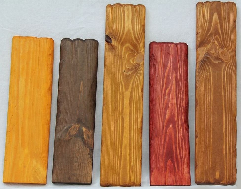 Al elegir una mezcla, la madera de prueba está pintada. El tono resultante se verá afectado por el color natural, el grado del material. La calidad, la densidad de las soluciones es de gran importancia. Los mismos números de composición de diferentes fabricantes pueden dar tonos de diferente saturación y profundidad.