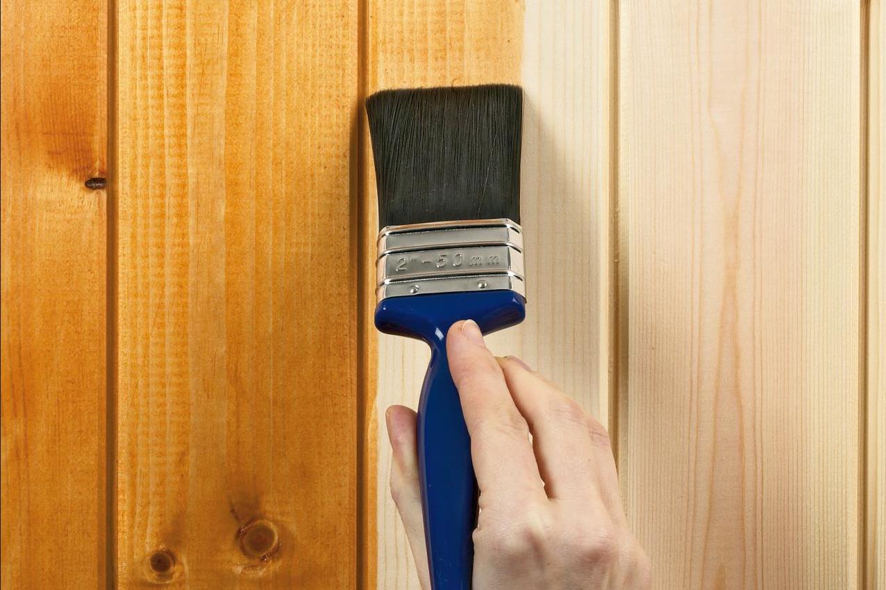 Para reducir el consumo de manchas al teñir madera de coníferas, es necesario quitar la resina de madera de la base de antemano.