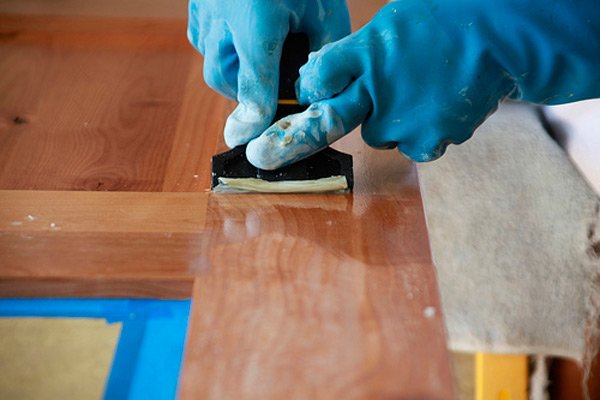 Grietas, poros, astillas en los muebles de cerca masilla en la madera. Los defectos se procesan cuidadosamente, después del secado se limpian. Los lugares de masilla deben estar nivelados con el resto de la superficie. La mezcla niveladora se puede preparar independientemente del pegamento de PVA y los residuos que quedan después de la molienda. La consistencia de la masilla se controla aumentando o disminuyendo la cantidad de pegamento.
