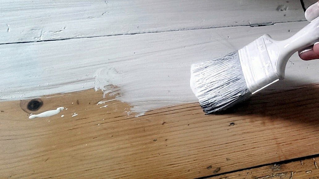 Para pintar muebles bajo roble blanqueado, se aplica una fina capa de esmalte con un rodillo o spray. Sobre una base seca con un cepillo plano ancho, se aplican trazos paralelos en una sola dirección. Después del secado, pulir, barnizar, a base de agua o cera.