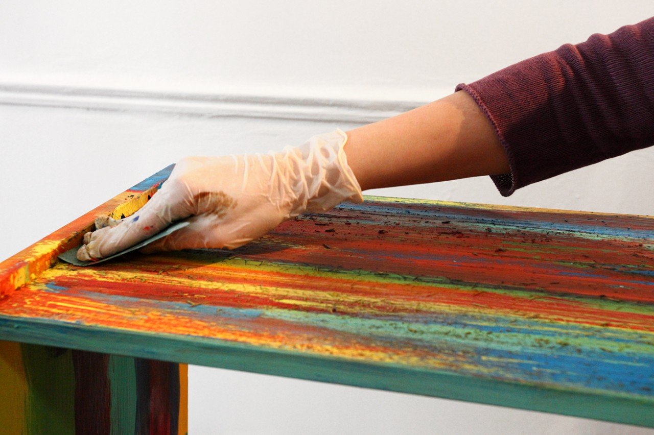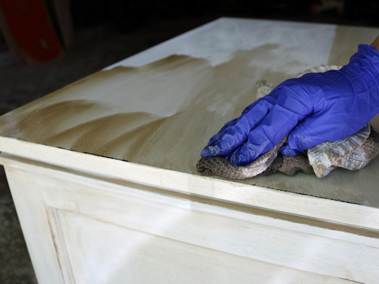 Examine el material del mueble, imagine el efecto que desea lograr, calcule el área a pintar. El embalaje muestra un cálculo aproximado de pinturas y barnices.