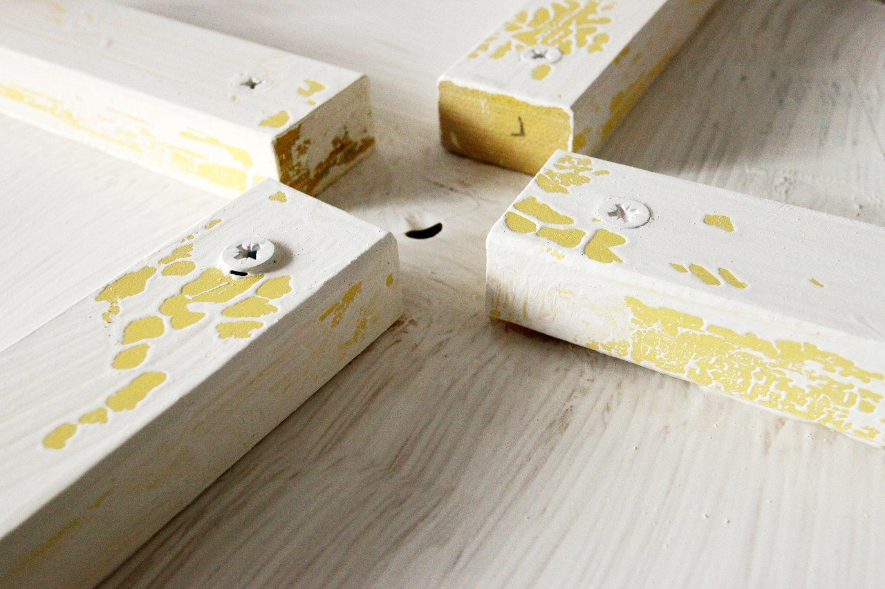 Es fácil lograr un efecto de pátina por su cuenta.La fachada está pintada con esmalte acrílico, para el envejecimiento en algunos lugares se lijan con papel de lija y se pulen con trapos. La segunda capa está pintada con esmalte de un tono diferente y nuevamente tratada con papel de lija. El mobiliario está cubierto con barniz acrílico mate.
