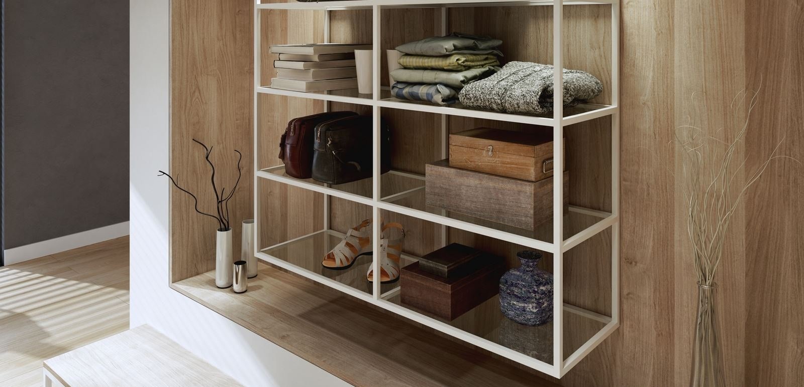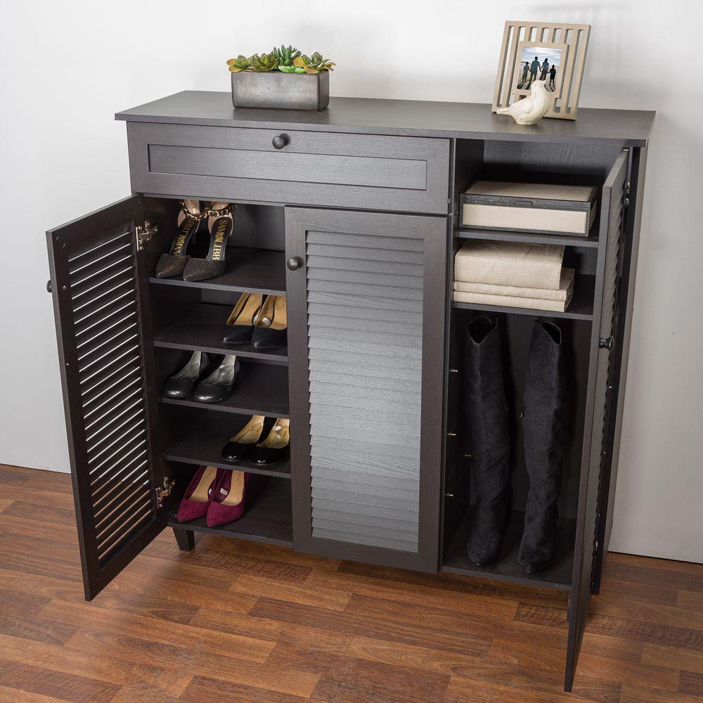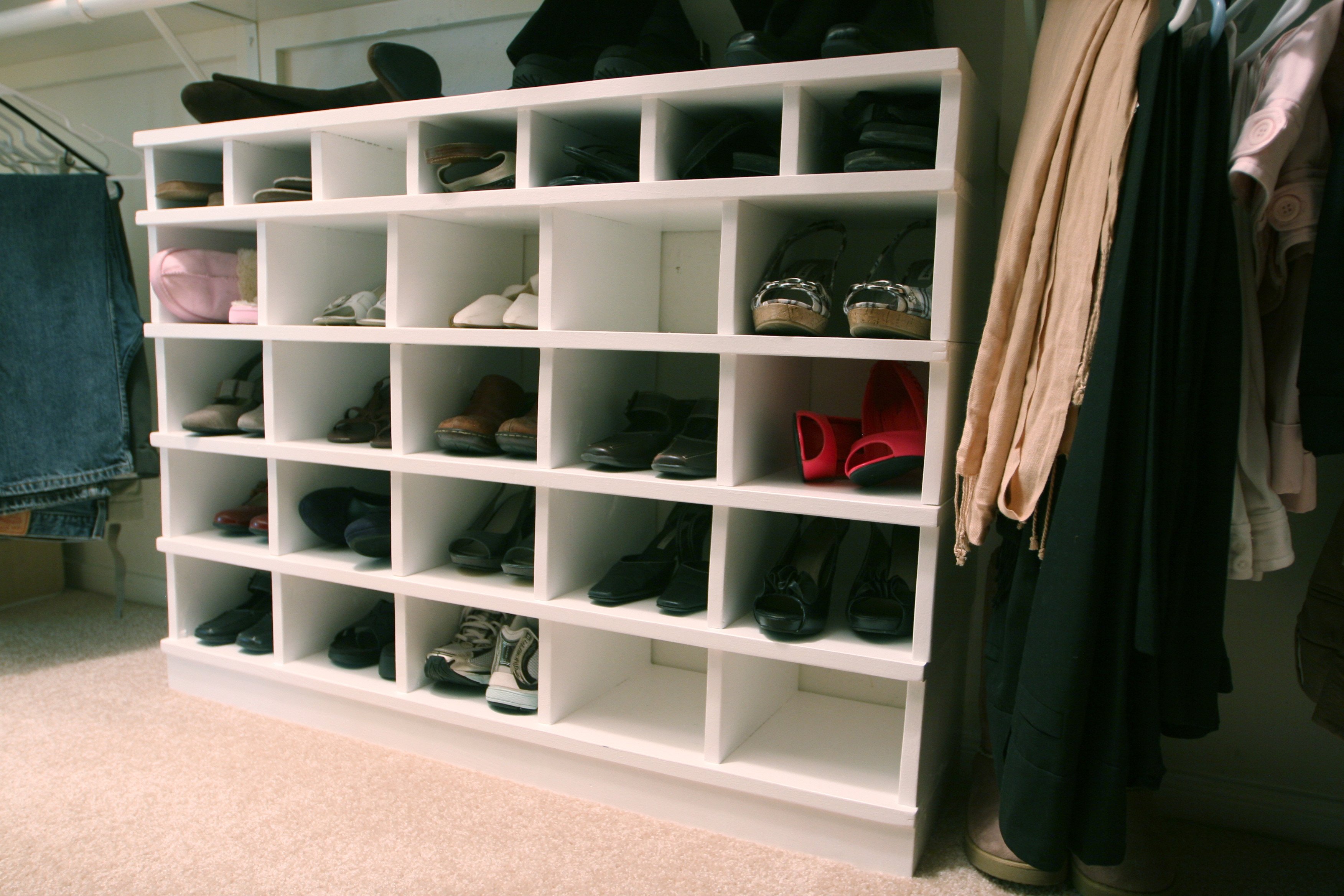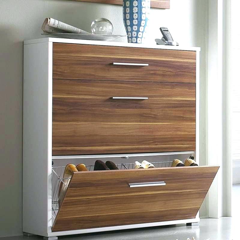 Estantes y armarios de tipo cerrado o modelos delgados. Las cajas horizontales convencionales se consideran poco prácticas, por lo tanto, en los modelos modernos, se utilizan cada vez más mecanismos especiales delgados que giran con la puerta y llevan los estantes a la posición "inclinada". Cuando está cerrado, los zapatos se mantienen en posición vertical.