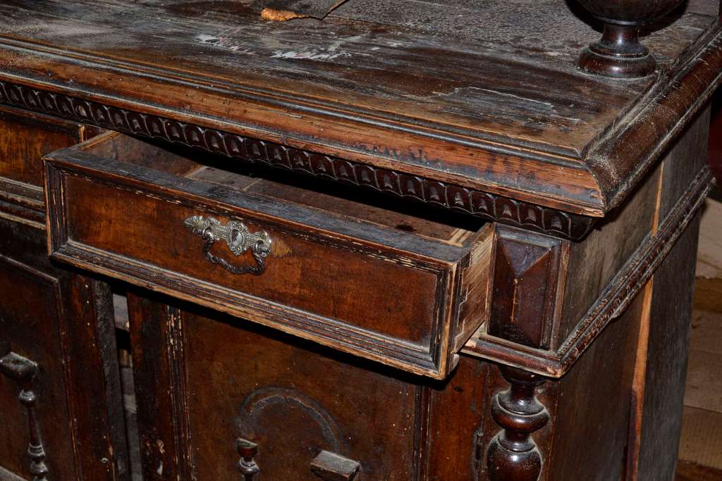 Al reparar superficies, los muebles viejos solo deben desmontarse como último recurso. Una de las opciones para analizar es el daño al interior del hongo, los roedores.Comienzan la separación con las partes menos fijas, que se pueden quitar y desenroscar fácilmente. Pueden ser placas de metal, cerraduras, puertas, patas, estantes y otras partes deslizantes.