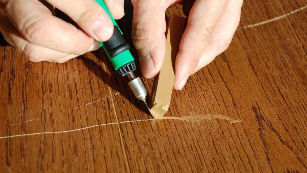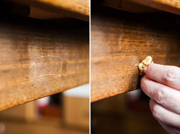 Abolladuras sin dañar la madera. En la superficie del receso se lleva a cabo con un esfuerzo con un cincel, con un cuchillo varias veces a lo largo de las fibras.Después de pelar, cubra la abolladura con un paño húmedo y séquela con una plancha.