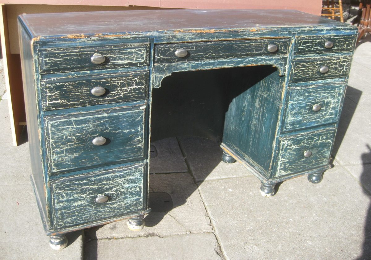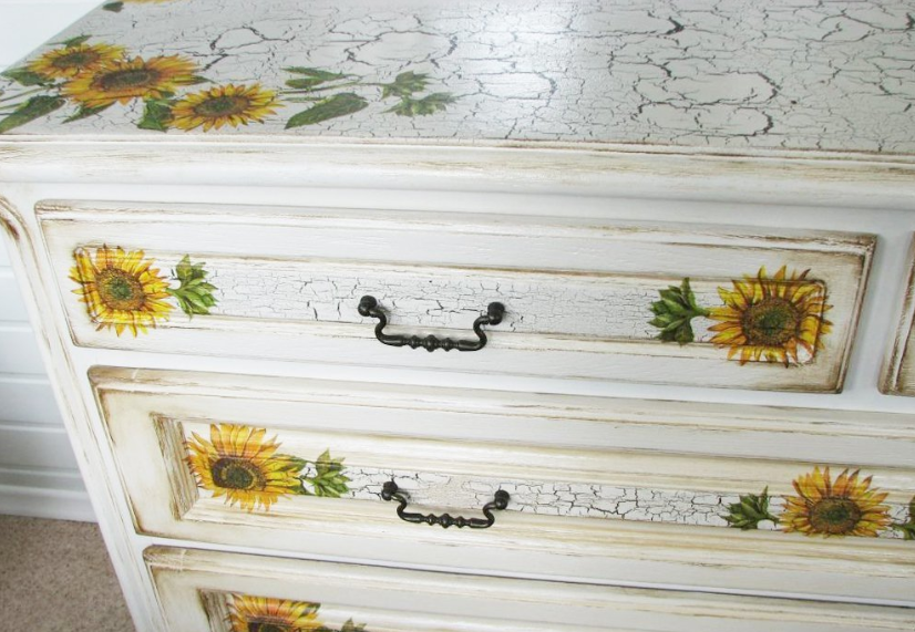 Craquelado monofásico. El revestimiento se ve como pintura agrietada, debajo de las grietas de las cuales la capa base o la madera es visible. El efecto se logra debido a las diferentes velocidades de secado de la primera y segunda capa. Sin embargo, la pintura base no siempre se usa, a veces solo es suficiente un revestimiento colorido. El barniz Craquelure se aplica a la superficie y no se seca completamente durante media hora. Después de aplicar la capa de acabado de pintura acrílica con una brocha o rodillo. El tamaño de las grietas dependerá del grosor de la composición.