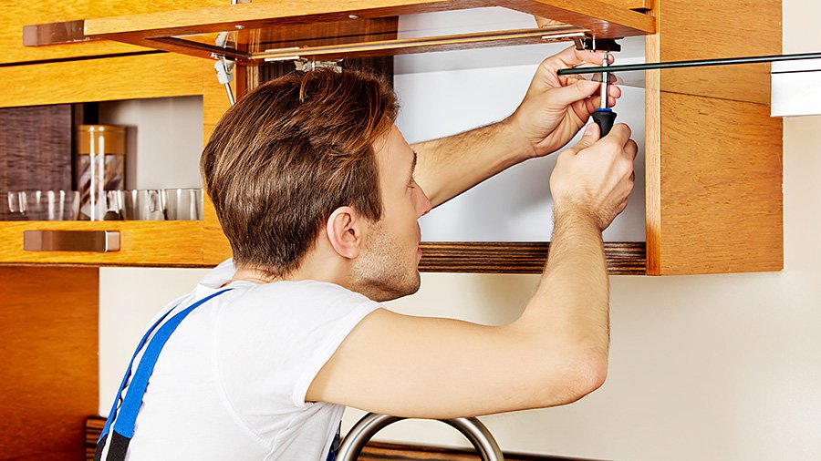 Los accesorios responsables de la facilidad de uso de los muebles y la funcionalidad se instalan en último lugar. Si los agujeros viejos se aflojan, deben actualizarse, repararse y perforarse nuevos.