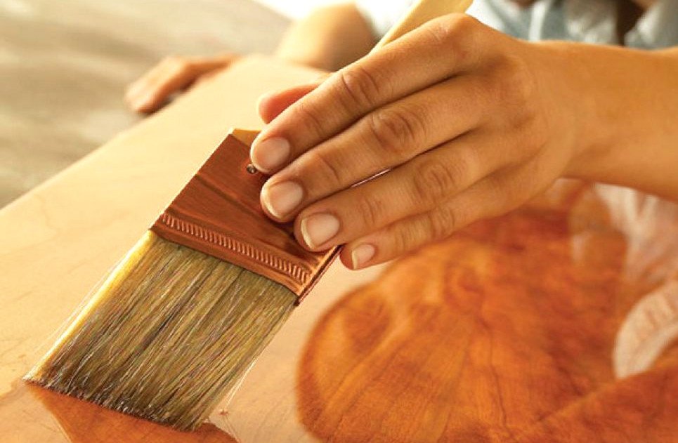 Hisopo Adecuado para barnices a base de alcohol. El material se aplica mediante movimientos rápidos a lo largo de las fibras. Es necesario asegurarse de que los bordes de los trazos no se encuentren, de lo contrario el color será heterogéneo.