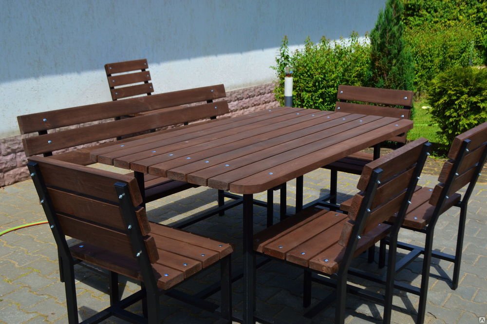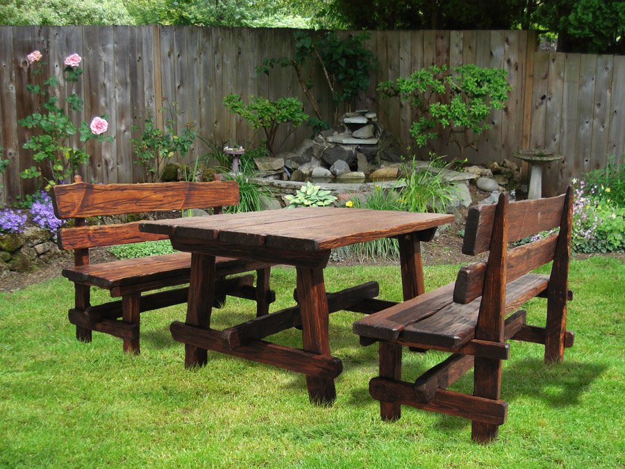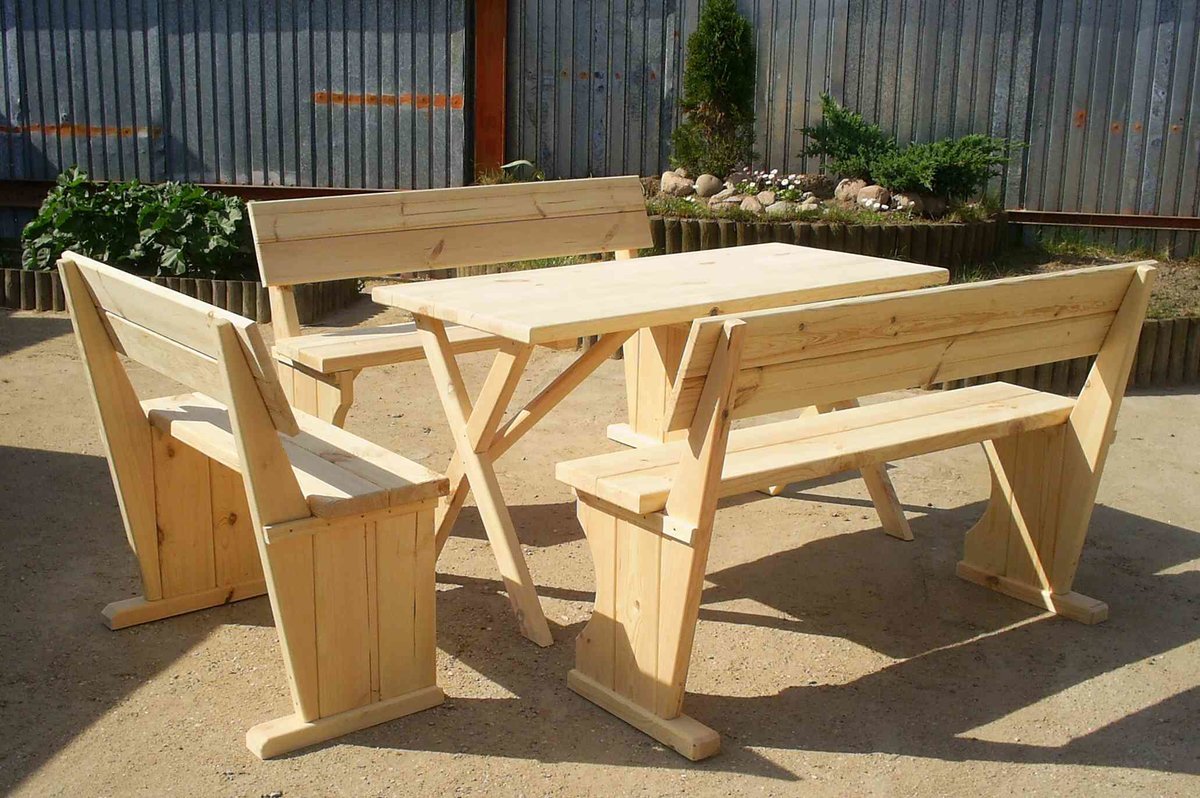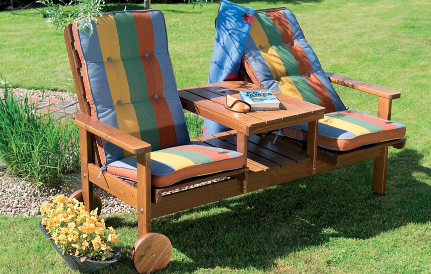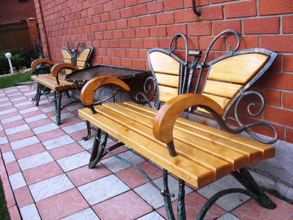 Trabajar con materiales preparados requiere menos esfuerzo y, por lo tanto, puede trabajar más tiempo y más a fondo en el resultado final.Un ejemplo de material procesado son los tableros cepillados. Para el montaje de muebles de jardín, elija madera sólida seca del más alto o primer grado. Entonces el tablero no se distorsionará y conducirá. Para un jardín cercano con una casa cara, los muebles se ensamblan a partir de tablas de corte radial con una textura mínima. Las opciones de jardín convencionales están hechas de fragmentos de un corte tangencial o semi-radial. Para enfatizar la belleza natural del árbol, se utilizan tablas de sierra radial con anillos concéntricos distintos. Además, están barnizados o encerados, pero casi nunca están pintados. Del material se obtienen hermosas mesas con sillas adjuntas, sillones, tabiques, estanterías y taburetes, así como cenadores y areneros.