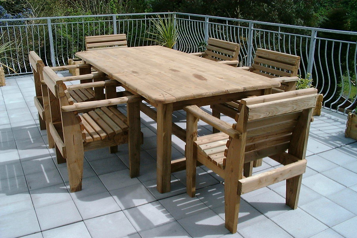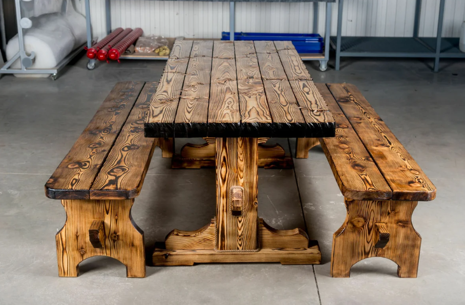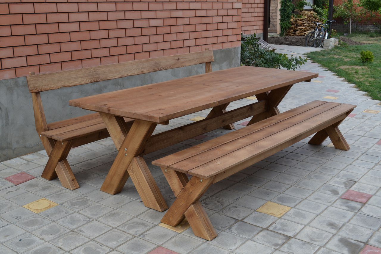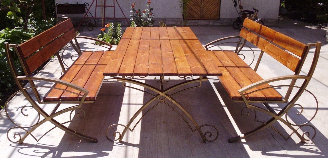 Trabajar con materiales preparados requiere menos esfuerzo y, por lo tanto, puede trabajar más tiempo y más a fondo en el resultado final.Un ejemplo de material procesado son los tableros cepillados. Para el montaje de muebles de jardín, elija madera sólida seca del más alto o primer grado. Entonces el tablero no se distorsionará y conducirá. Para un jardín cercano con una casa cara, los muebles se ensamblan a partir de tablas de corte radial con una textura mínima. Las opciones de jardín convencionales están hechas de fragmentos de un corte tangencial o semi-radial. Para enfatizar la belleza natural del árbol, se utilizan tablas de sierra radial con anillos concéntricos distintos. Además, están barnizados o encerados, pero casi nunca están pintados. Del material se obtienen hermosas mesas con sillas adjuntas, sillones, tabiques, estanterías y taburetes, así como cenadores y areneros.