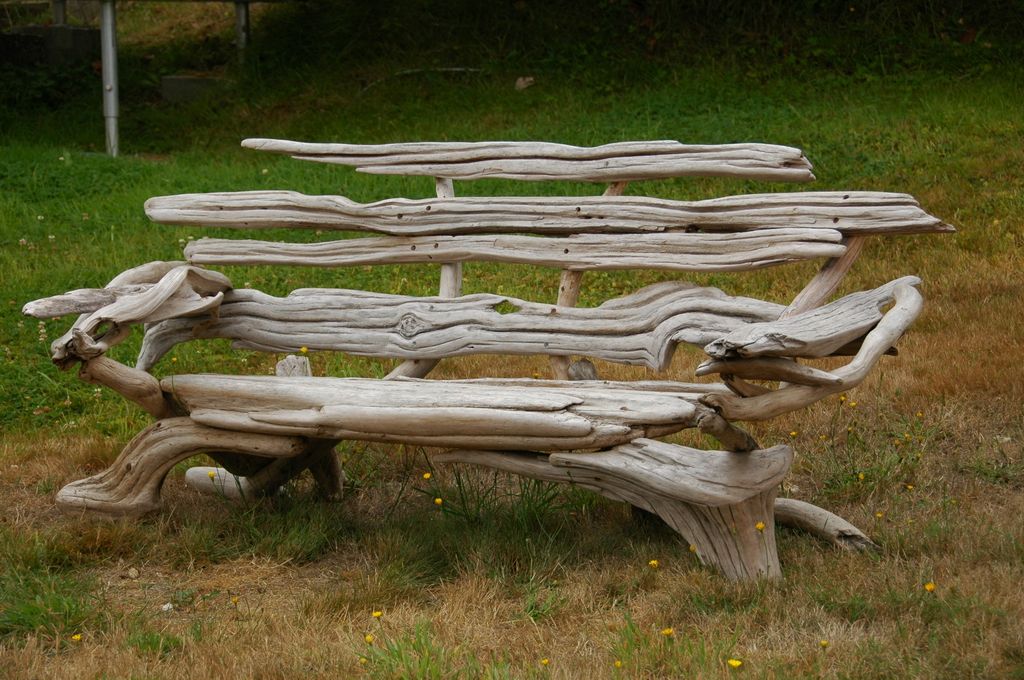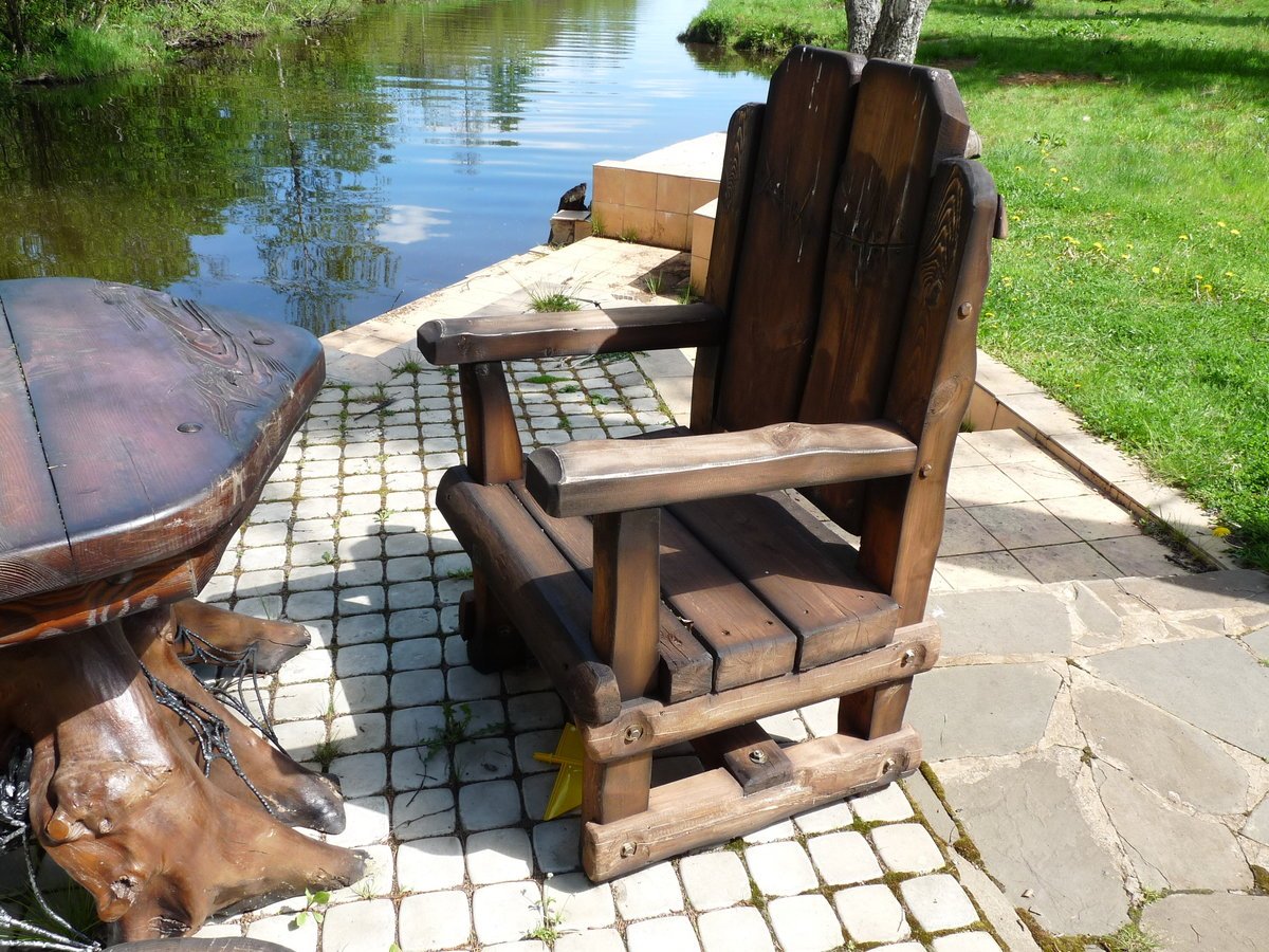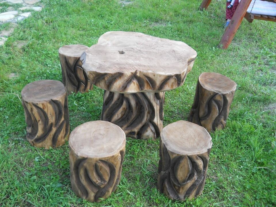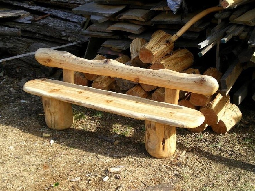 Los elementos de registro están conectados con clavos: a través de agujeros hechos por un taladro Lewis de 20-25 mm. Las tazas en los registros se hacen incompletas. Para los bancos, los troncos se seleccionan sin bolsas de resina y un número mínimo de nudos; las partículas de resina también se eliminan de la superficie. En principio, es mejor rechazar las coníferas, especialmente si no hay deseos especiales sobre ellas. Los chaflanes se eliminan en las mitades contiguas de la mesa y luego se vuelven a unir firmemente con alfileres de madera. Los tocones para crear muebles se usan de diferentes maneras. En primer lugar, en el territorio mismo después de los árboles aserrados hay tocones que en cualquier momento se "convierten" en una silla o su semejanza. Pero los bancos con mesas se recogen de enganches y tocones. La parte superior del cáñamo está decorada con mosaicos. Corte ancho para que hubiera un asiento y un respaldo. Se coloca un corvina sobre tocones desde arriba: el banco se vuelve adecuado para su uso.
