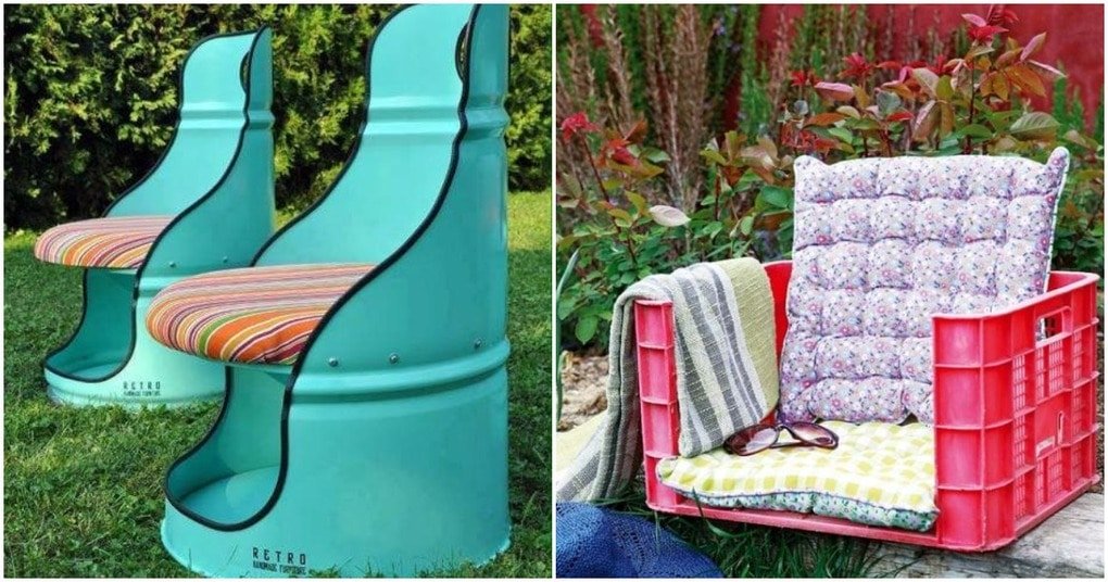 Los artículos viejos no utilizados simplificarán aún más la tarea de organizar el jardín. Muebles en mal estado y rotos, gracias a una presentación atenta, se convertirán en el sello distintivo del patio. De las camas obtendrá cercas bajas, gabinetes, puertas o portones. Un piano roto desempeñará el papel de una barra secreta, un pedestal, una cama de flores escalonada. Los bastidores viejos se convierten en soportes para macetas.A partir de los neumáticos, un artesano experto ensamblará un conjunto completo y muebles medianos: mesas, sillas, sofás. Los neumáticos se convierten en cómodos pufs, se pegan previamente con una cuerda y se instalan en las patas. En el patio definitivamente hay un lugar para una mesa adicional desde la puerta vieja. Y si lo desea, en el sitio, puede instalar un enrejado desde la hoja de la puerta. Si hay una cantidad suficiente de materias primas en la casa de campo, puede aparecer un cenador, una ducha de campo y casas de animales.