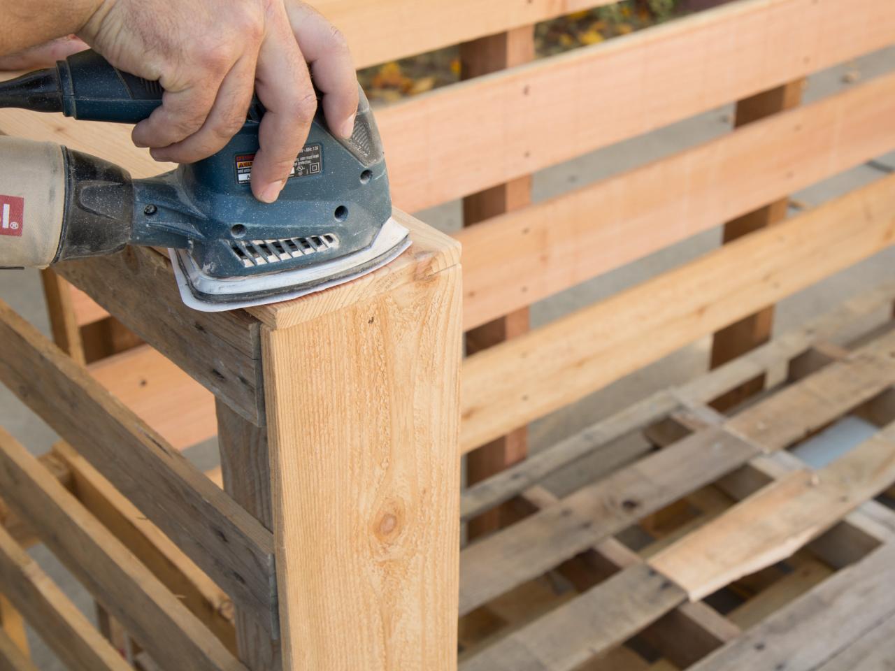 Se requiere un tratamiento previo y termina con la aplicación de una capa protectora. La preparación de palets incluye 5 etapas. En primer lugar, se limpia de suciedad, con la ayuda de detergente, agua y paños. No tiene sentido manipular paletas nuevas de esta manera; basta con limpiar con un paño húmedo. Luego, tablas pulidas por asperezas y astillas. Al mismo tiempo, el procesamiento de espacios abiertos es suficiente.Una paleta pequeña debe procesarse manualmente con papel de lija. Boquillas especiales para taladros y amoladoras también son adecuadas. Para el trabajo, es aconsejable elegir un área bien ventilada. Después de eso, la madera tiene propiedades repelentes al agua, por ejemplo, aplicando una imprimación. Para usar en el jardín, la solución de aceite no es suficiente. La mejor herramienta es la imprimación acrílica. Si lo desea, las paletas están pintadas, y la preparación previa simplemente facilitará este proceso y ahorrará pintura. El procesamiento se completa por barnizado.